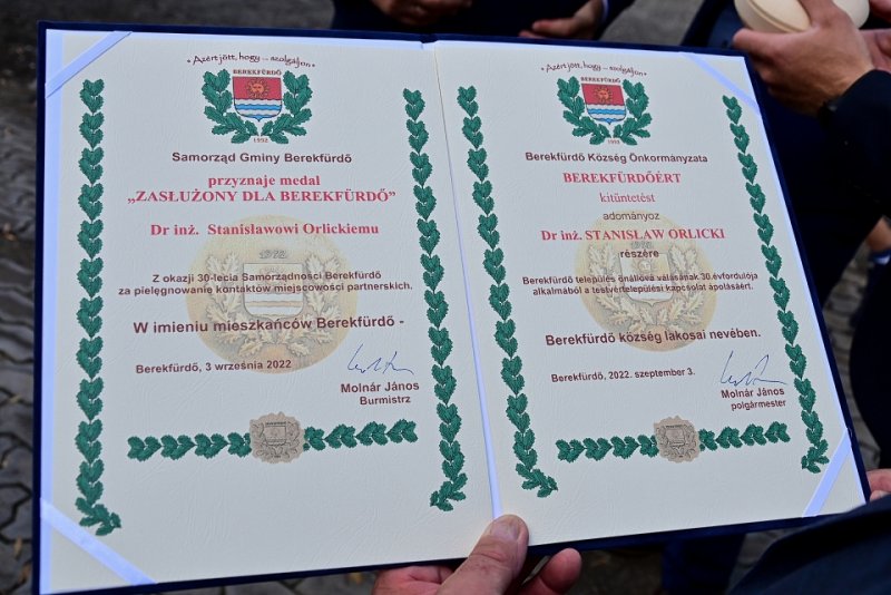 Przewodniczący Rady Miejskiej w Zatorze Stanisław Orlicki oraz Burmistrz Zatora Mariusz Makuch odznaczeni medalem Zasłużony dla Berekfürdő