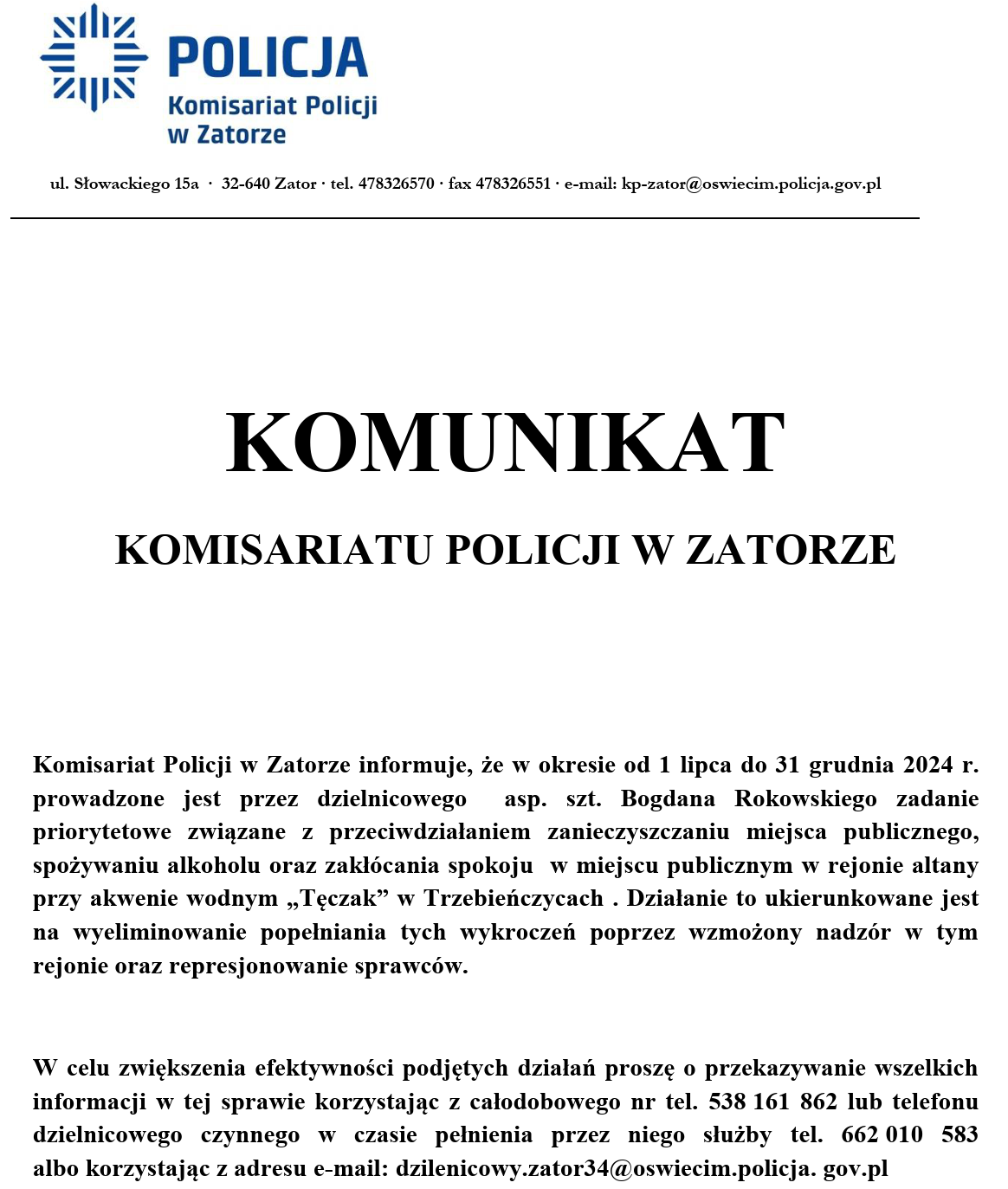 Komisariat Policji w Zatorze od 03.07.2020r., jak wszystkie jednostki Policji w kraju zmienił nr telefonu miejskiego.