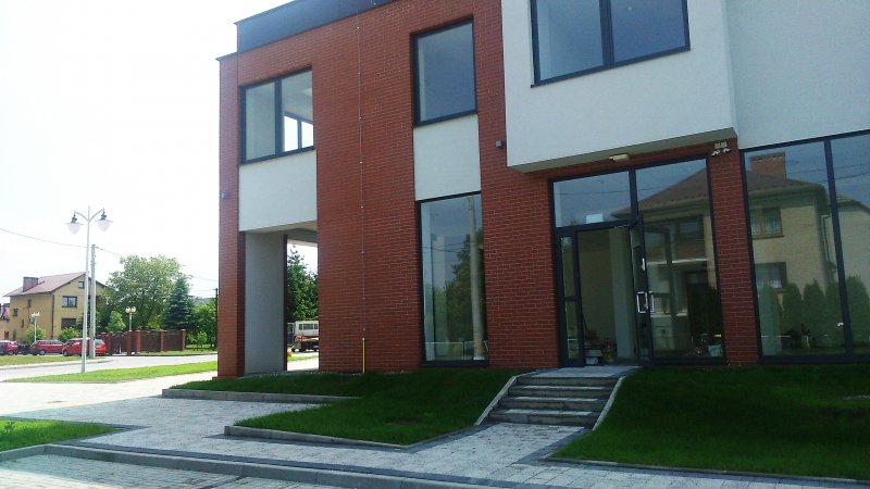 Obiekt łączy w sobie dwie funkcje: szkoleniową, która została przybliżona na wstępie oraz część biurowo- usługową. W skrzydle północnym, w części parteru zlokalizowano pomieszczenia usługowe przeznaczone do wynajęcia (206m2) oraz klatkę schodową, korytarz i dwa pomieszczenia techniczne. Pierwsze i drugie piętro skrzydła północnego oraz łącznika zajmują pomieszczenia biurowe. Na pierwszy piętrze mamy 11 pokoi biurowych o ogólnej powierzchni 221m2, salkę konferencyjną (40,3m2), salkę komputerową (25m2), sanitariaty, pomieszczenie socjalne oraz dwa pomieszczenia techniczne
