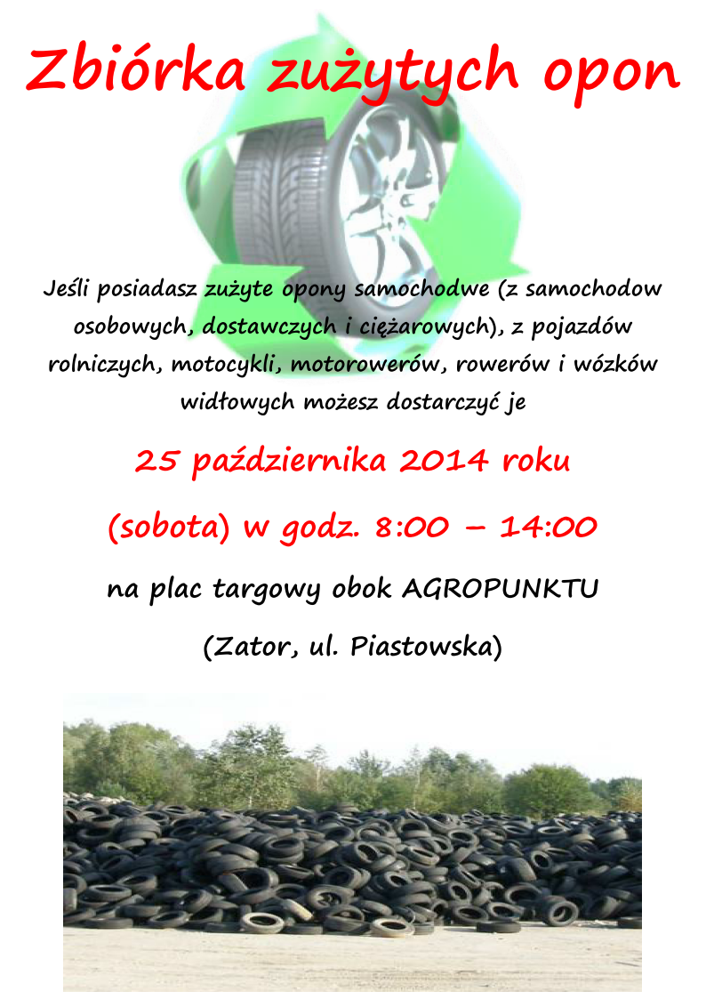 Jeśli posiadasz zużyte opony samochodwe (z samochodow osobowych, dostawczych i ciężarowych), z pojazdów rolniczych, motocykli, motorowerów, rowerów i wózków widłowych możesz dostarczyć je...