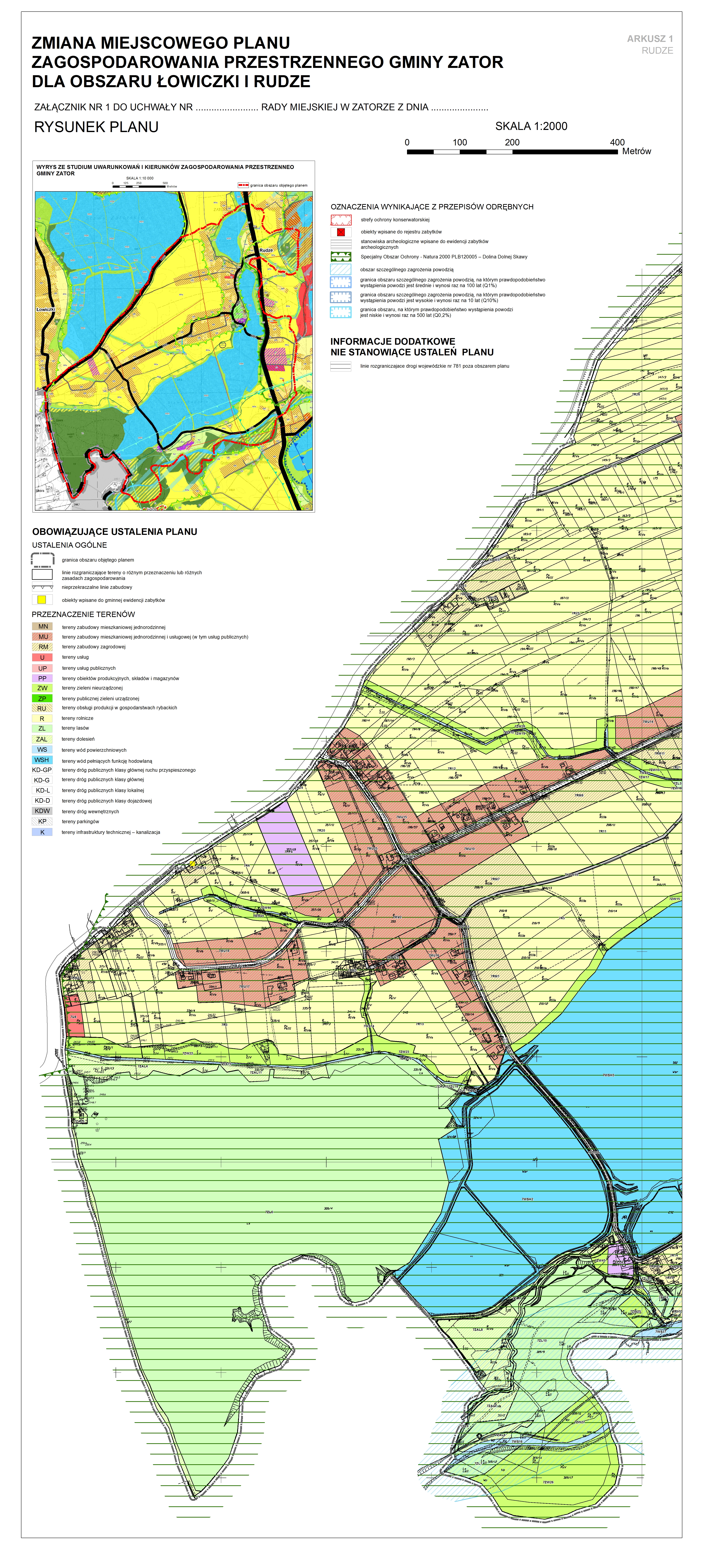 UCHWAŁA NR XLI/358/17 (obowiązująca) RYSUNEK STUDIUM uwarunkowania zagospodarowania przestrzennego Gminy Zator (obowiązujacy) |