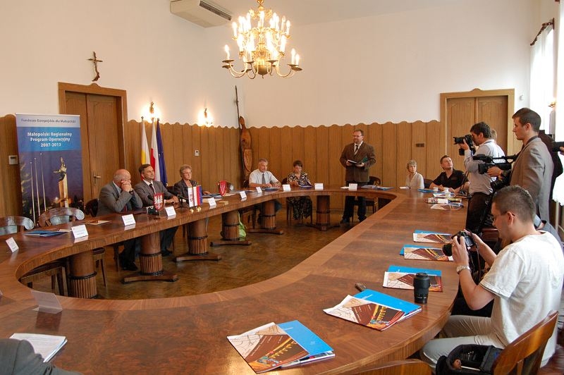 Po przekazaniu umowy miała miejsce konferencja prasowa poświęcona budowie Strefy Aktywności Gospodarczej Małopolski Zachodniej – Gmina Zator oraz innych działań inwestycyjnych prowadzonych obecnie w naszej gminie, Pan Marszałek oraz Burmistrz Zatora udzielali wyczerpujących odpowiedzi na pytania licznie przybyłych dziennikarzy.