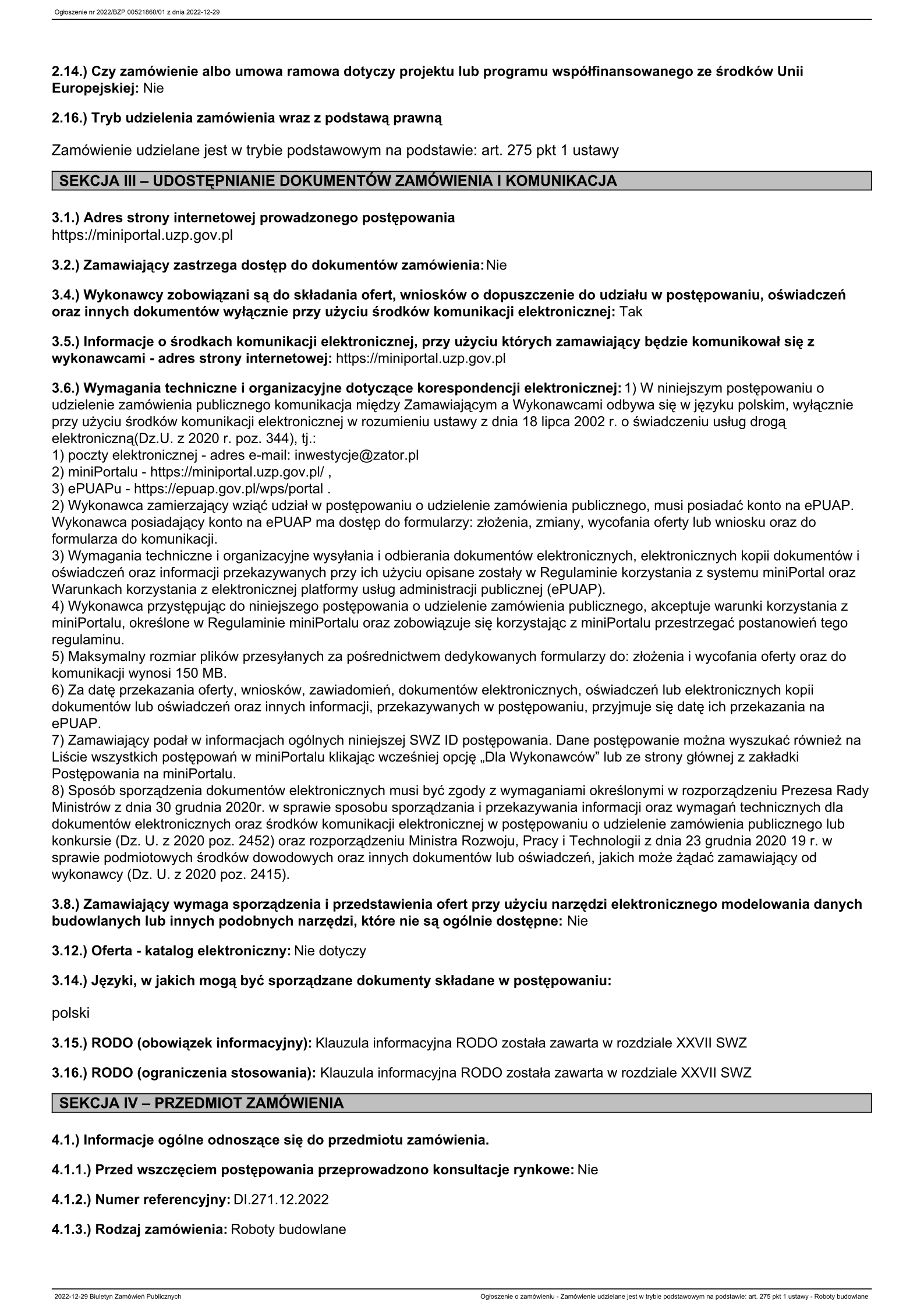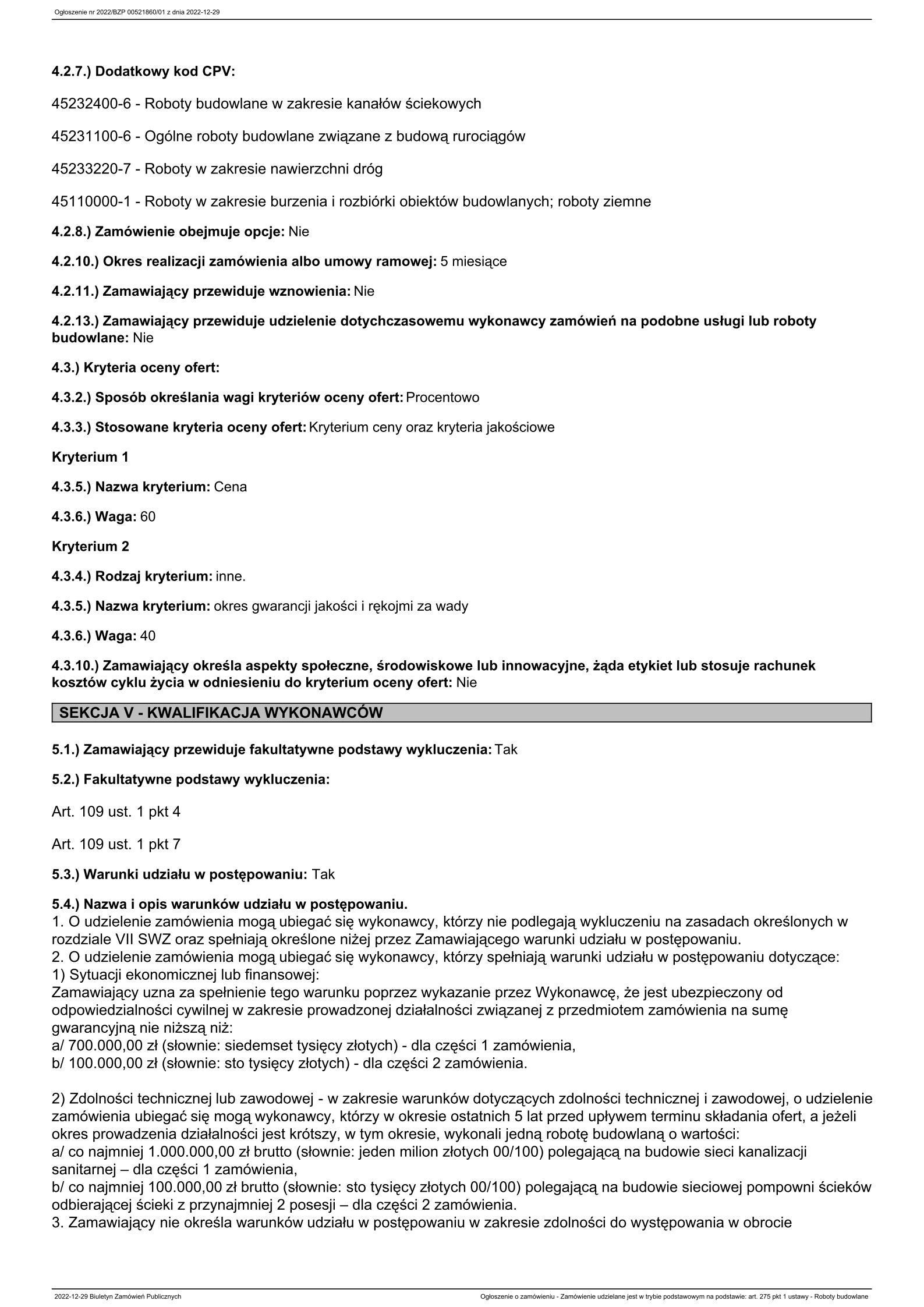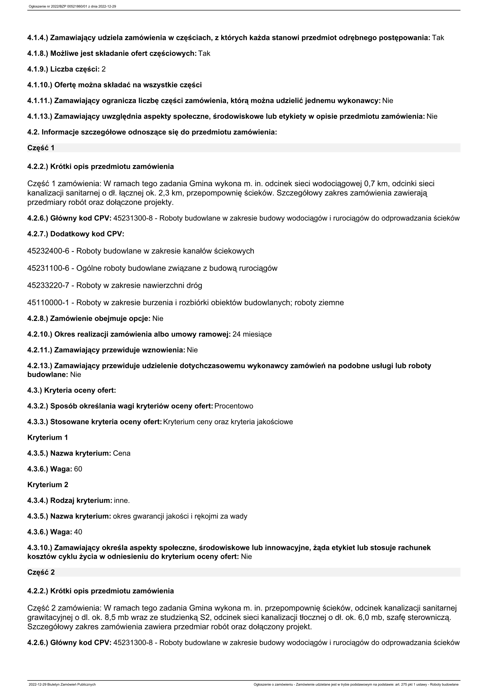 DI.271.12.2022 Budowa sieci wodno-kanalizacyjnej w Gminie Zator realizowane w dwu oddzielnych częściach: 1. Część 1: Budowa sieci wodno-kanalizacyjnej w miejscowości Grodzisko i Graboszyce, Gmina Zator. 2. Część 2: Budowa przepompowni ścieków na ...