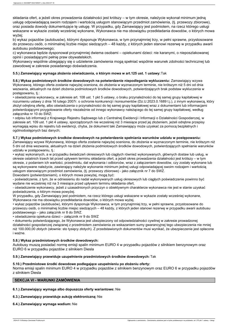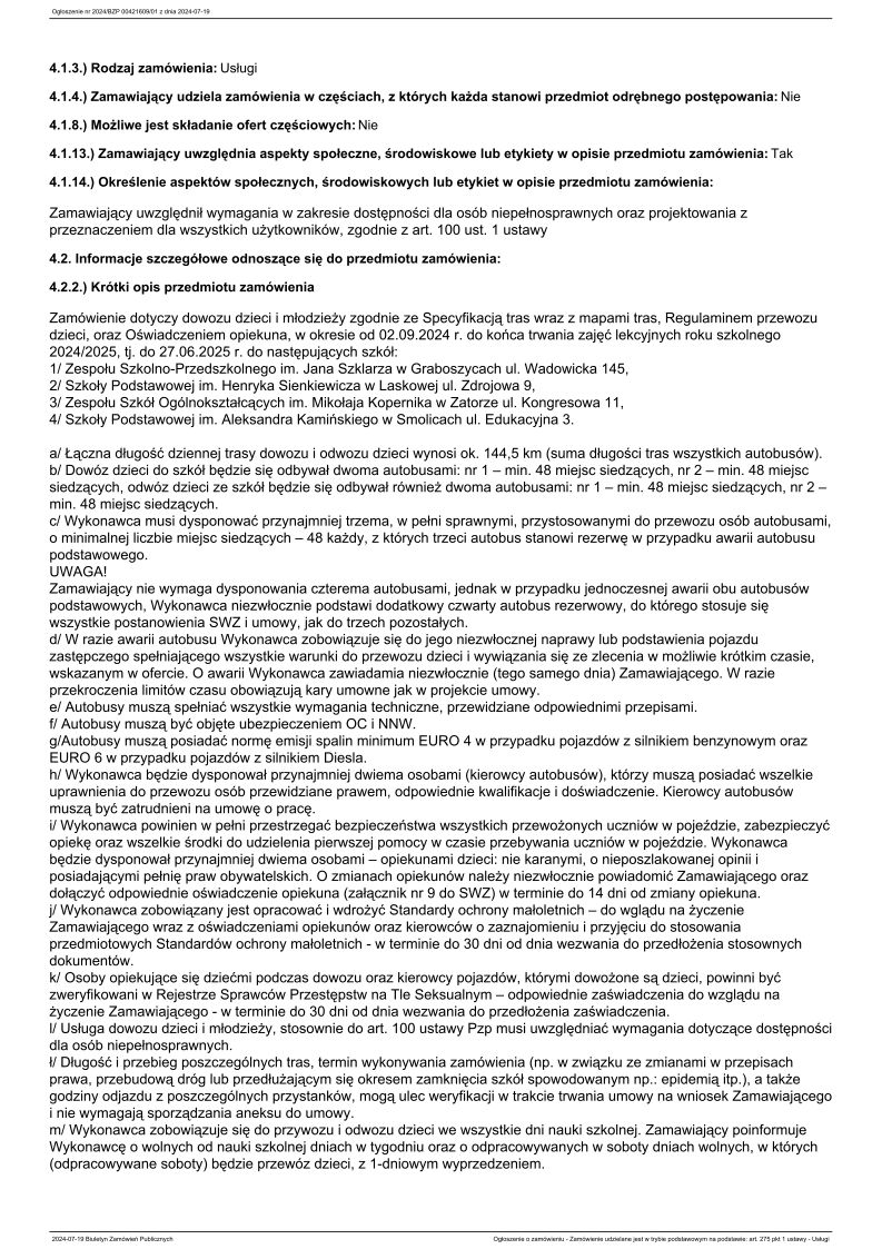 DI.271.17.2024 "Dowóz dzieci i młodzieży do szkół oraz ze szkół do miejsc zamieszkania, na terenie gminy Zator, w roku szkolnym 2024/2025" - ogłoszenie o zamówieniu.