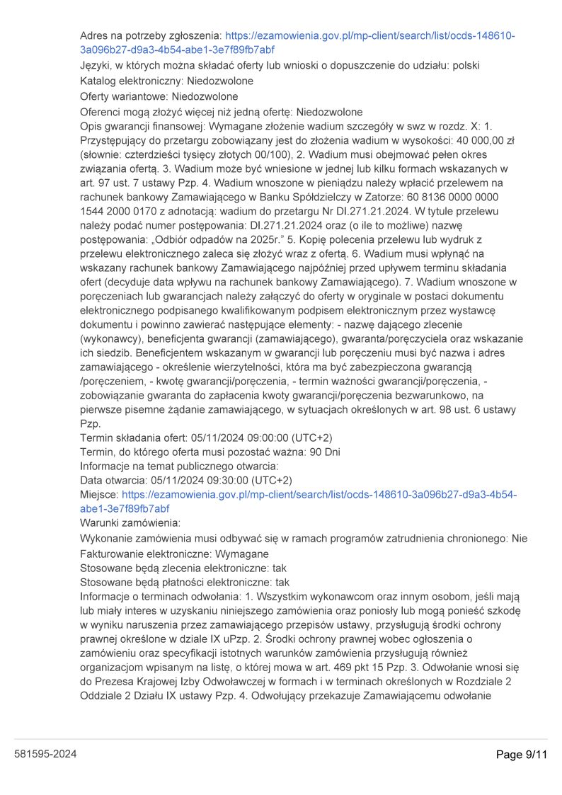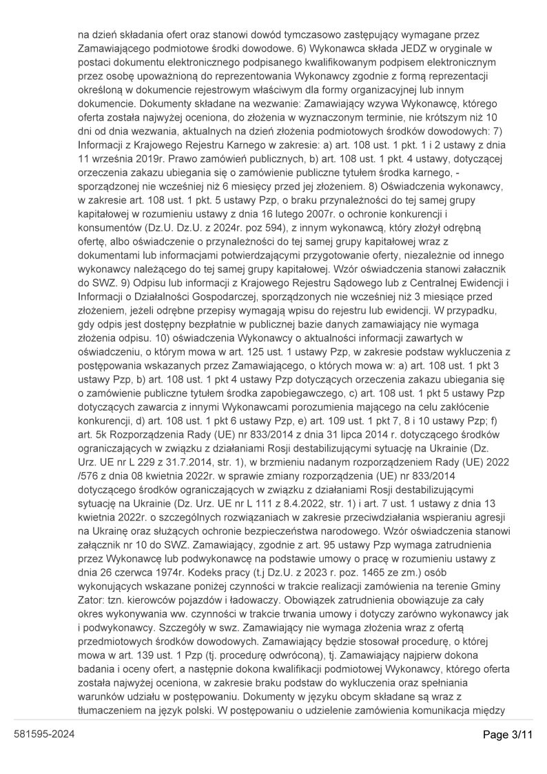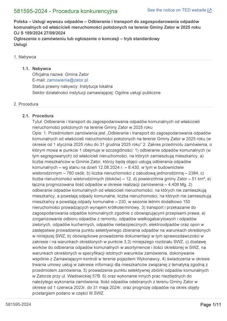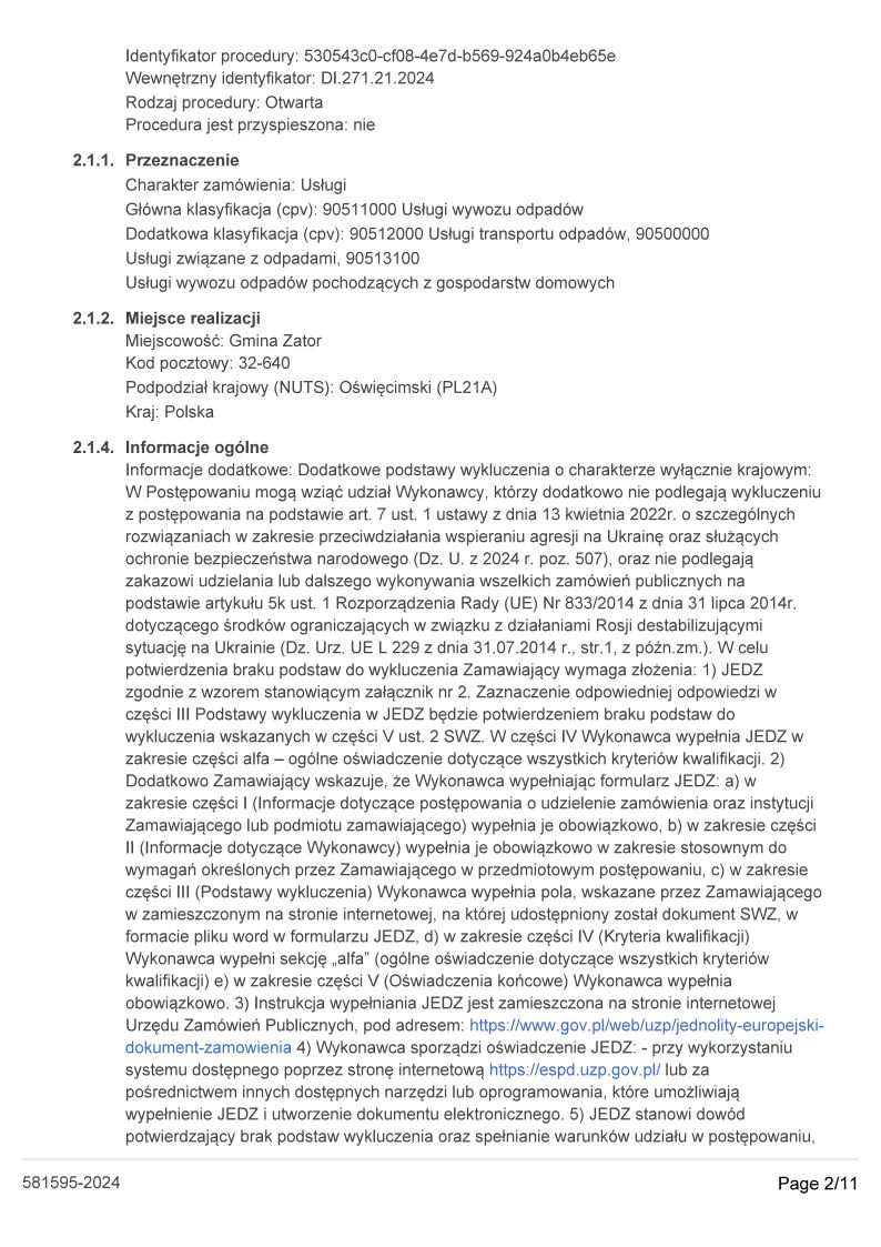 DI.271.21.2024 Odbieranie i transport do zagospodarowania odpadów komunalnych od właścicieli nieruchomości położonych na terenie Gminy Zator w 2025 roku - ogłoszenie o zamówieniu.