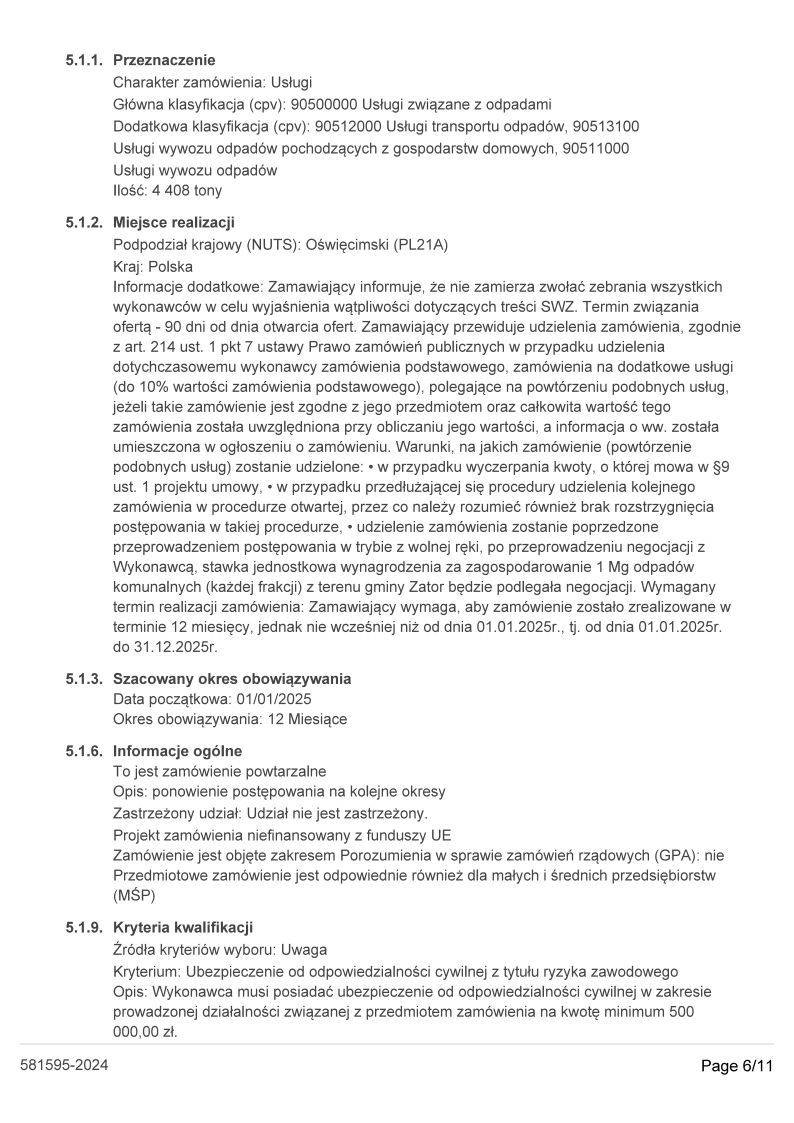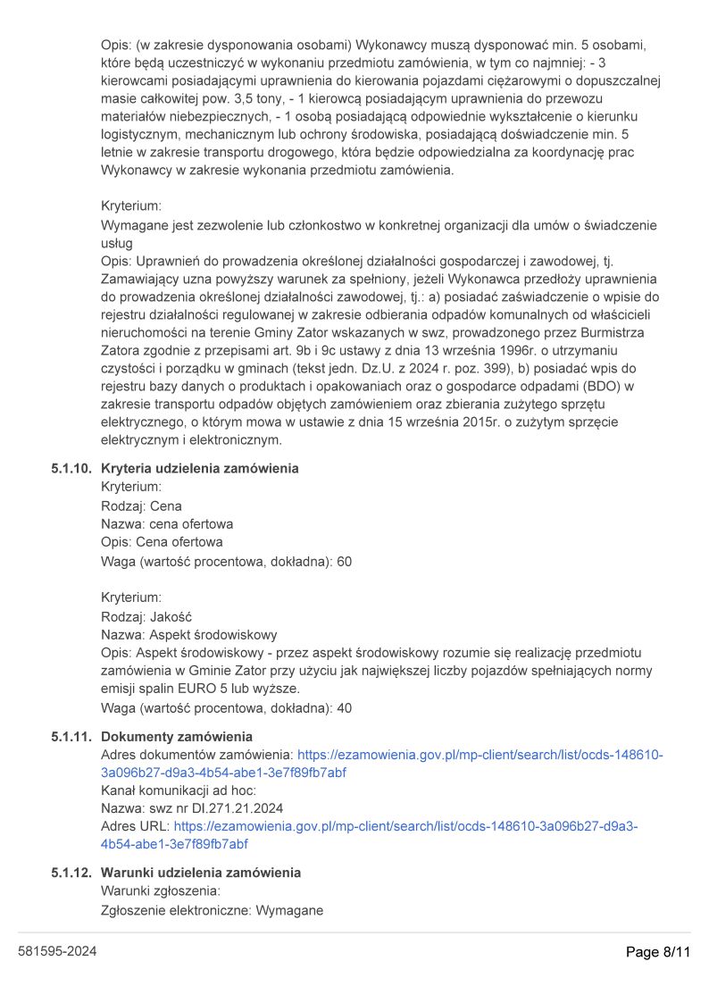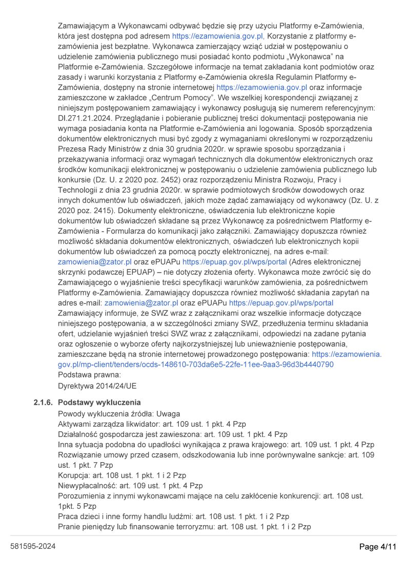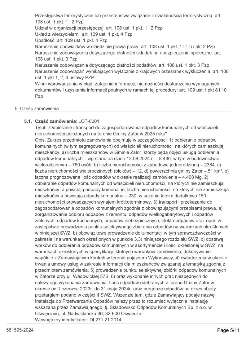 DI.271.21.2024 Odbieranie i transport do zagospodarowania odpadów komunalnych od właścicieli nieruchomości położonych na terenie Gminy Zator w 2025 roku - ogłoszenie o zamówieniu.