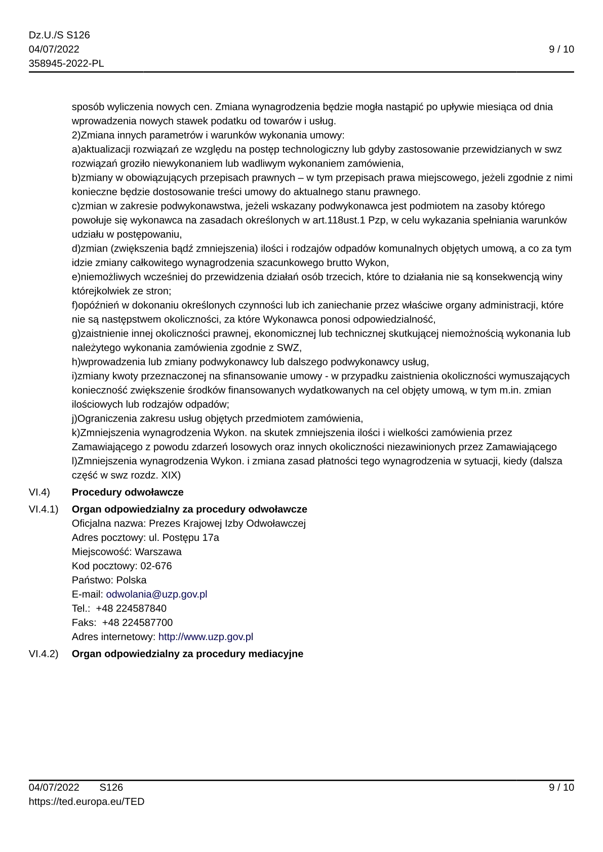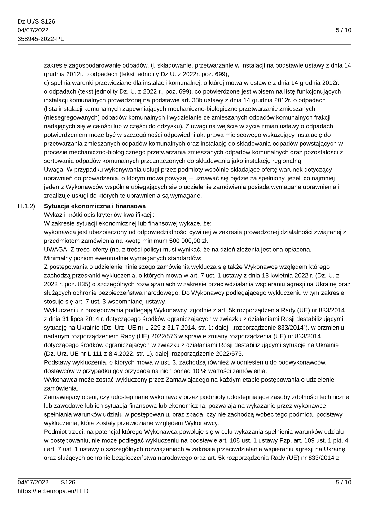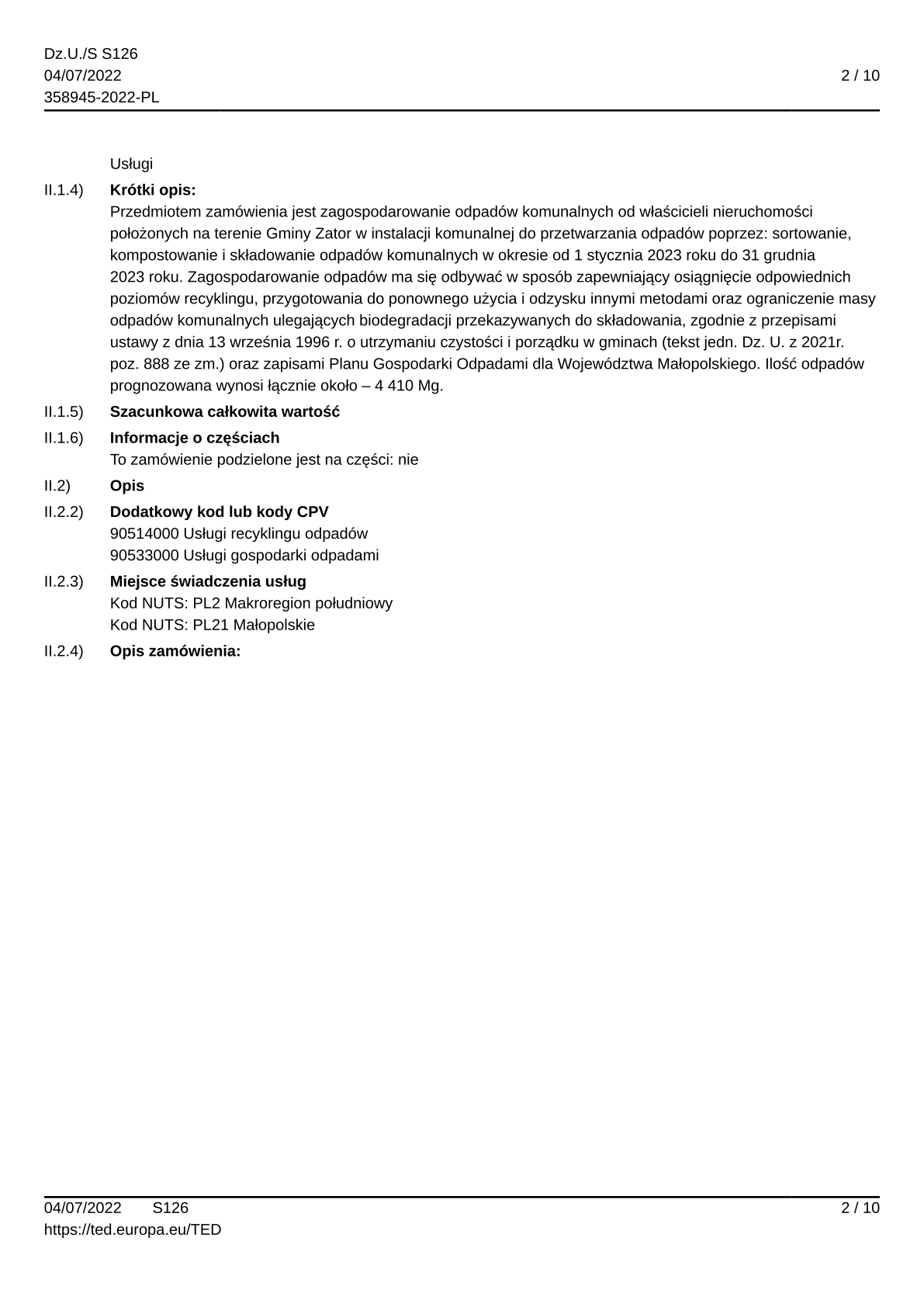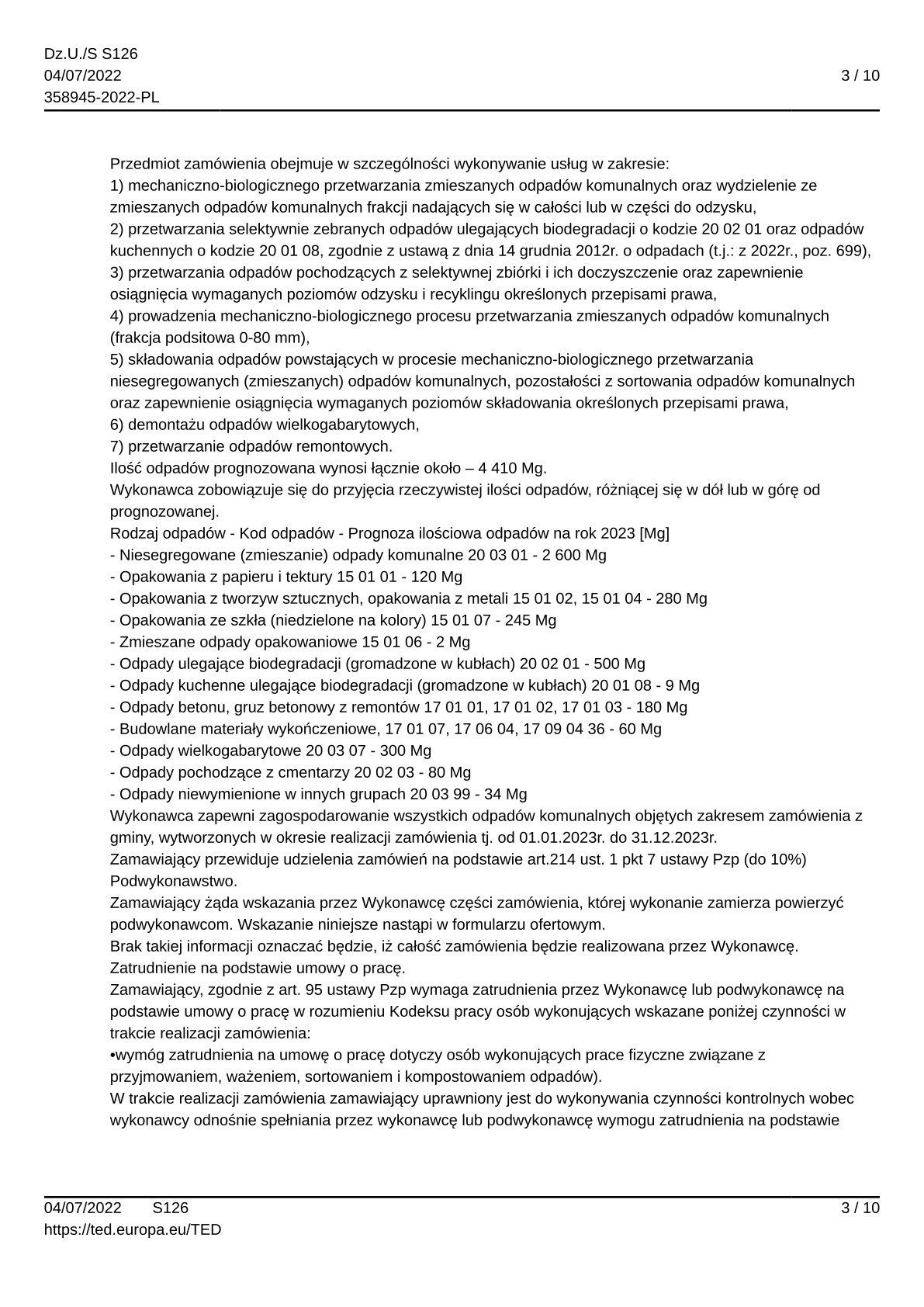 DI.271.5.2022 Zagospodarowanie odpadów komunalnych od właścicieli nieruchomości położonych na terenie Gminy Zator w instalacji komunalnej do przetwarzania odpadów poprzez: sortowanie, kompostowanie i składowanie odpadów komunalnych w okresie od 1 stycznia