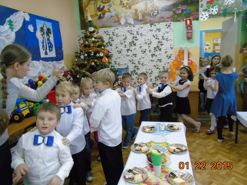 Mali artyści przygotowali repertuar składający się z wierszy, piosenek oraz krótkiej inscenizacji. Natomiast w drugi dzień wystąpiły dzieci z zerówki, klasy 1 i 2. Dzieci zaprezentowały wspaniały program artystyczny. Goście z dumą i wzruszeniem patrzyli na swoje wnuki. Głośnymi brawami podziękowali im za piękne występy. Na zakończenie dzieci zaśpiewały wszystkim babciom i dziadkom gromkie ,, Sto lat ‘’. Następnie wręczyły babciom korale, a dziadkom różowe okulary z papieru, aby patrząc przez nie świat wydawał im się bardziej kolorowy. Uczniowie z klasy 1 i 2 wykonali dla swoich dziadków obrazki metodą quillingu, czyli za pomocą zrolowanych paseczków kolorowego papieru. Na koniec zaproszeni goście udali się na słodki poczęstunek przygotowany przez rodziców. Uroczystość upłynęła w bardzo miłej i serdecznej atmosferze.