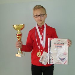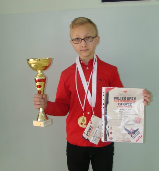 Po raz kolejny uczeń klasy drugiej Gimnazjum w Zatorze - Alan Tałajczyk pochwalić się może sukcesem w zawodach Karate. Tym razem 18.03.2017 r. w Wadowicach miały miejsce zawody w ramach POLISH OPEN CHAMPIONSHIP KARATE KYODOKYOKUSHIN, w których zajął zaszczytne pierwsze miejsce w kategorii lekki kontakt junior mł. do 40 kg. Szczerze gratulujemy i życzymy dalszych sukcesów.