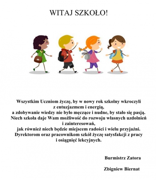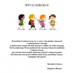 Wszystkim Uczniom życzę, by w nowy rok szkolny wkroczyli z entuzjazmem i energią, a zdobywanie wiedzy nie było męczące i nudne, by stało się pasją...