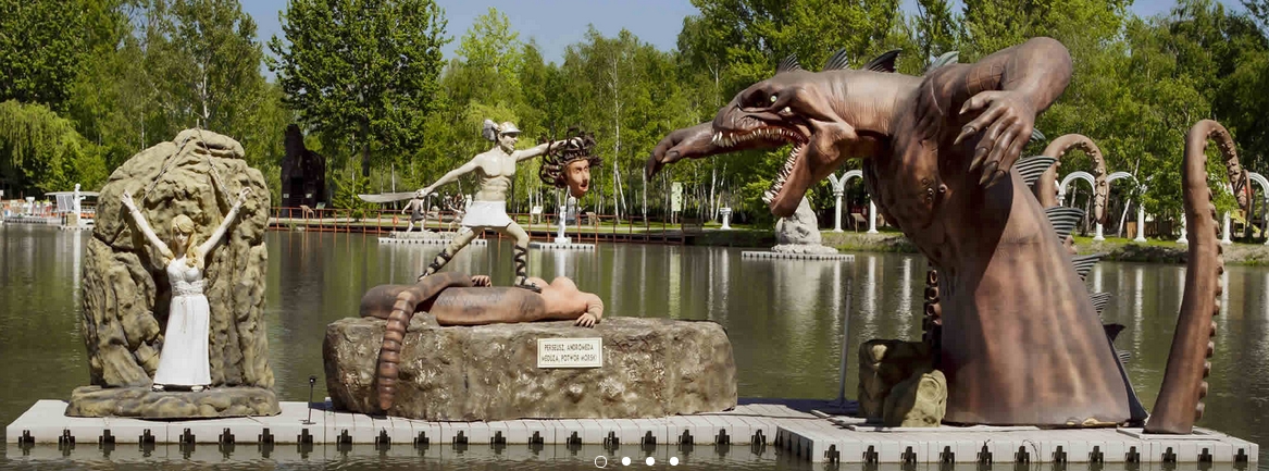 Park Mitologii na wodzie to jedyne takie miejsce w Polsce, gdzie można obejrzeć pięknie odwzorowane figury greckich bogów, herosów, bohaterów i mitycznych stworzeń. Wśród nich prawdziwą atrakcję stanowią latający Dedal i Ikar, gromowładny Zeus z prawdziwym piorunem, Achilles walczący z Hektorem, Herakles pokonujący hydrę czy Perseusz ratujący Andromedę przed morskim potworem. Któż nie chciałby stanąć oko w oko ze Sfinksem, usłyszeć szczekanie trzygłowego Cerbera i zobaczyć jak Demeter poradzi sobie z gigantem.