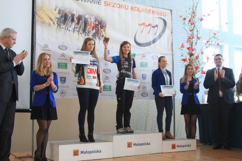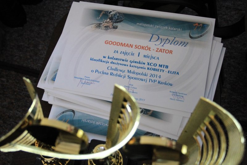 Takimi wynikami mogą się poszczycić kolarze UKS Sokół Zator, którzy zostali nagrodzeni podczas gali podsumowania sezonu 2014, organizowanej przez Małopolski Związek Kolarski i TVP Kraków. Na najwyższym podium stanęły aktualne mistrzynie Polski Rita Malinkiewicz w kategorii Elita Kobiet i Gabriela Wojtyła, która zdominowała kategorię Juniorek. W grupie kolarzy do 23 lat, na drugiej pozycji ran w uplasował się Kamil Bukowski. Solidarnie z Kamilem drugie miejsce w rocznej rywalizacji Juniorów zajął nasz zawodnik – Paweł Prudło. Wśród juniorek młodszych na trzeciej pozycji sklasyfikowana została Karolina Włoch. W sezonie 2015 nasi zawodnicy pozostaną wciąż w swoich kategoriach wiekowych więc plan jest jeden – poprawić wyniki 2014 – które i tak były najlepsze w historii klubu. Do walki o zwycięstwo w nowym sezonie włączy się zapewne nasz najmłodszy zawodnik – Michał Śliwiński.