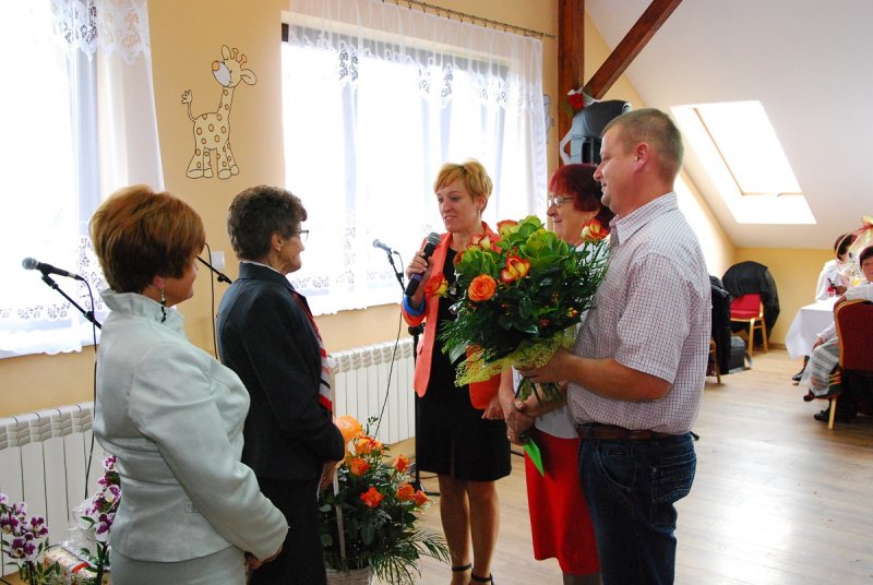 Na ręce Przewodniczącej Koła posypały się listy gratulacyjne, prezenty i kwiaty od zaproszonych gości, władz lokalnych, koleżanek z Kół Gospodyń Wiejskich i Stowarzyszeń z terenu Gminy Zator.