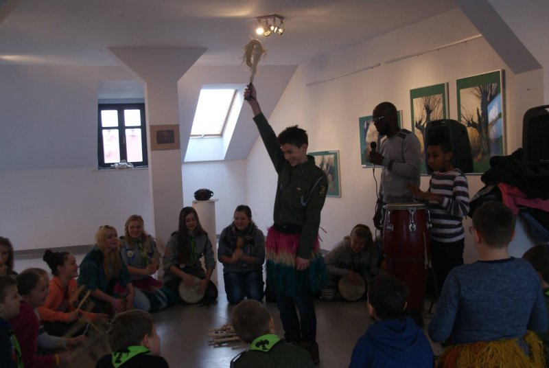 Tematem zajęć było poznanie kultury, tradycji, tańca i języka Kongo. Wszyscy harcerze świetnie się bawili. Założyli regionalne stroje afrykańskie, w których uczyli się tańczyć. Grali także na instrumentach muzycznych. Zbiórka przebiegła w radosnej atmosferze. Już czekamy na następne spotkania. Składamy serdeczne podziękowania dla Pana Yuga Buassa za wprowadzenie nas w afrykańskie klimaty.