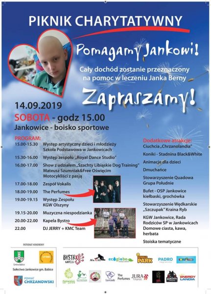 14 września odbędzie się Akcja Charytatywna na rzecz chłopaka! Każdy może przyjechać do Jankowic i pomóc! Janek choruje na raka kości. Potrzebne są pieniądze na wszczepienie endoprotezy biodra, rehabilitację i dalsze leczenie!