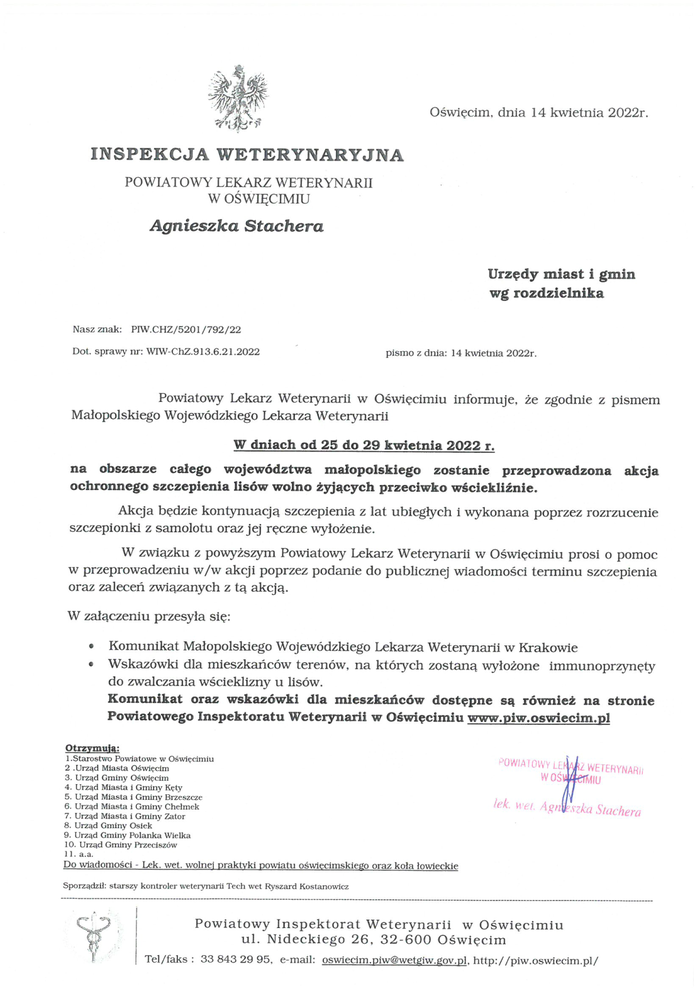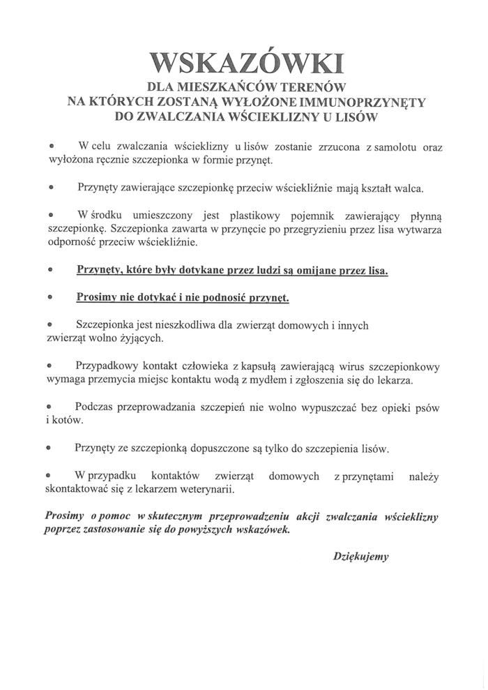 Akcja ochronnego szczepienia lisów przeciwko wściekliźnie w dniach od 25 do 29 kwietnia 2022 roku. 2022-04-19