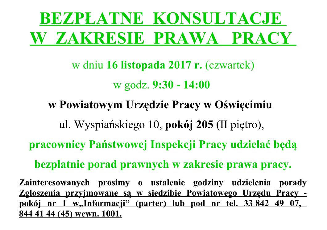 Bezpłatne konsultacje z zakresu prawa pracy 2017-10-13