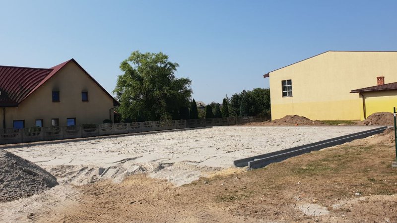Budowa boiska sportowego o nawierzchni z trawy naturalnej przy ZSO w Zatorze. Zakres robót obejmuje m.in.: