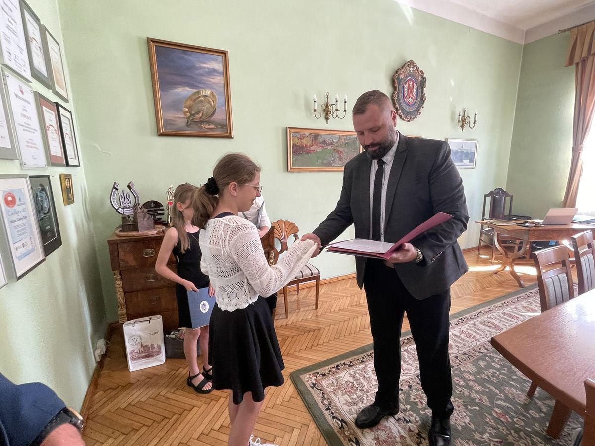 Burmistrz Zatora Szymon Matyja oraz Komendant Powiatowy Policji w Oświęcimiu insp. Robert Chowaniec spotkali się z młodymi mieszkankami gminy Zator oraz ich rodzicami, aby podziękować za wzorową postawę obywatelską.