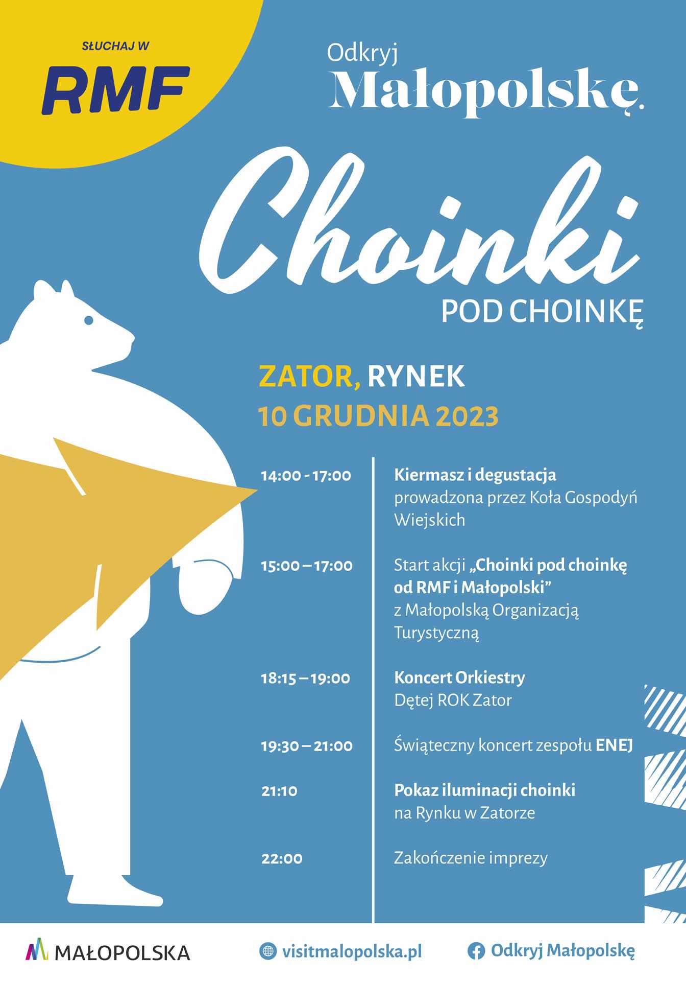 O 15 RMF FM będzie rozdawał choinki, ale to nie wszystko. Nie zabraknie również świątecznego kiermaszu i degustacji a to wszystko już od godziny 14. Oprócz koncertu orkiestry dętej wystąpi zespół ENEJ, a po 21 będzie można zobaczyć pokaz iluminacji choinki.