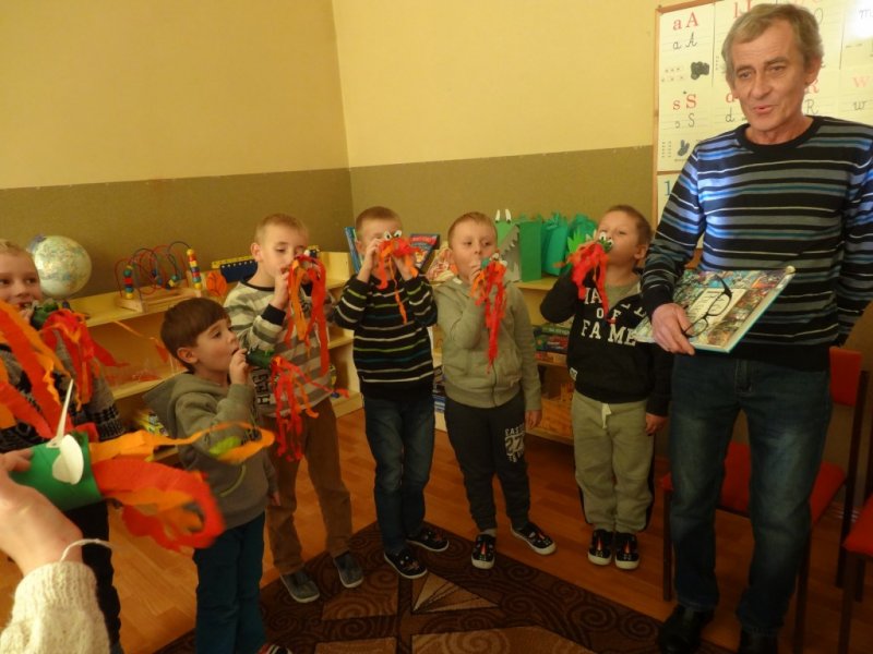Na zakończenie wspólnego czytania Pan Prezes opowiadał o swojej działalności społecznej i cierpliwie odpowiadał na pytania: Co skłoniło Pana do założenia stowarzyszenia? Na czym polega praca prezesa stowarzyszenia? Ile lat jest Pan prezesem?
