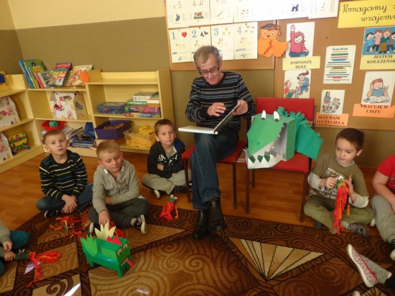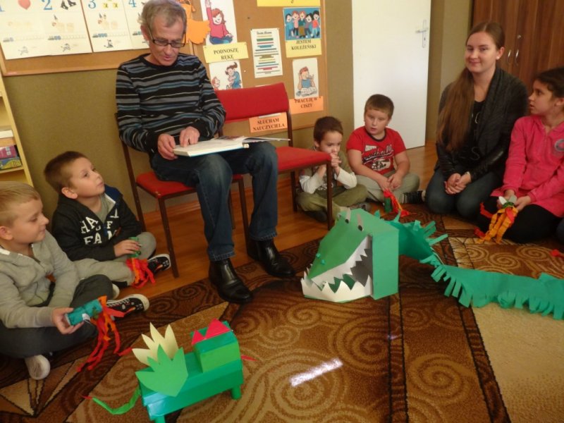 Nasza szkoła brała udział w projekcie ,,Czytanie w Małopolsce – lubię to '' organizowanym przez Stowarzyszenie ,,Raciechowice 2005 ''. Jedno z działań polegające na organizacji głośnego czytania dzieciom przez znane na danym obszarze osoby, szczególnie przypadło nam do gustu. Zaprosiliśmy na wspólne czytanie legendy ,, O wawelskim smoku '' Prezesa Stowarzyszenia na Rzecz Rozwoju Wsi Palczowice Pana Adama Kudzię. Do spotkania starannie się przygotowaliśmy. Wykonane przez nas na zajęciach plastycznych smoki stanowiły doskonałą ilustrację znanej krakowskiej legendy.