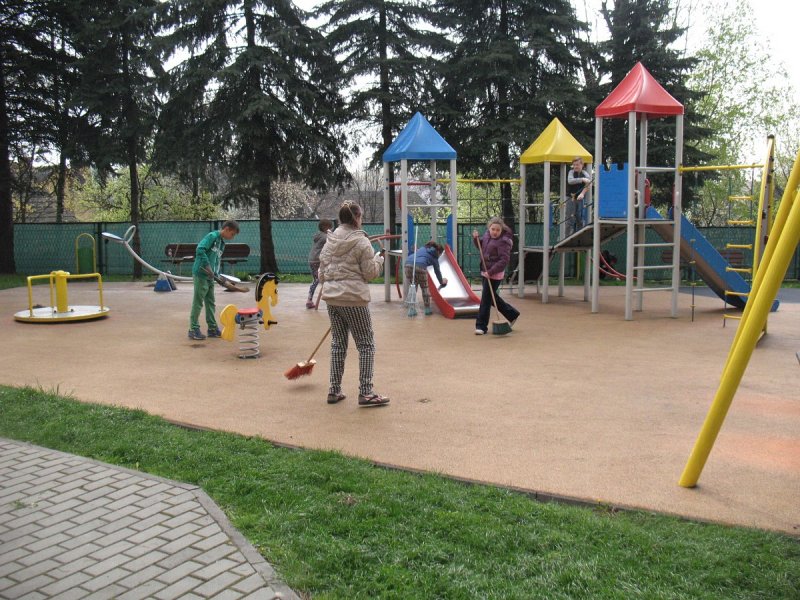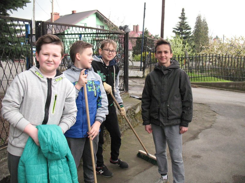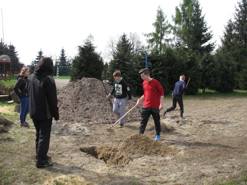 Jak co roku młodzież klas IV-VI i gimnazjum pod nadzorem nauczycieli porządkowała teren wokół szkoły. Każdy wyposażony został w odpowiedni sprzęt: miotłę, grabie i inne. Młodsi uczniowie grabili liście i igliwie, zamiatali drogi i place wokół budynku szkoły. Młodzież gimnazjalna wykonywała cięższe prace: plantowała ziemię, siała trawę, wyrywała chwasty przy parkingach i chodnikach oraz układała drewno.