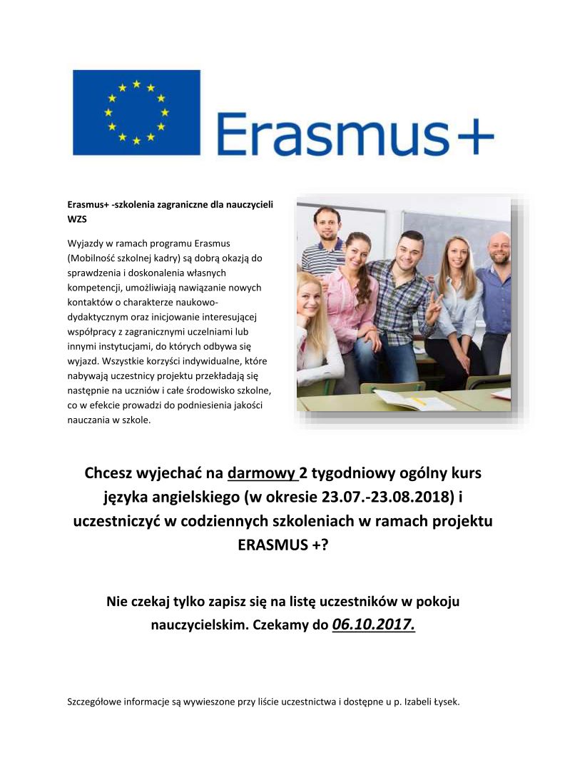 Erasmus plus - szkolenia zagraniczne dla nauczycieli WZS 2017-10-03