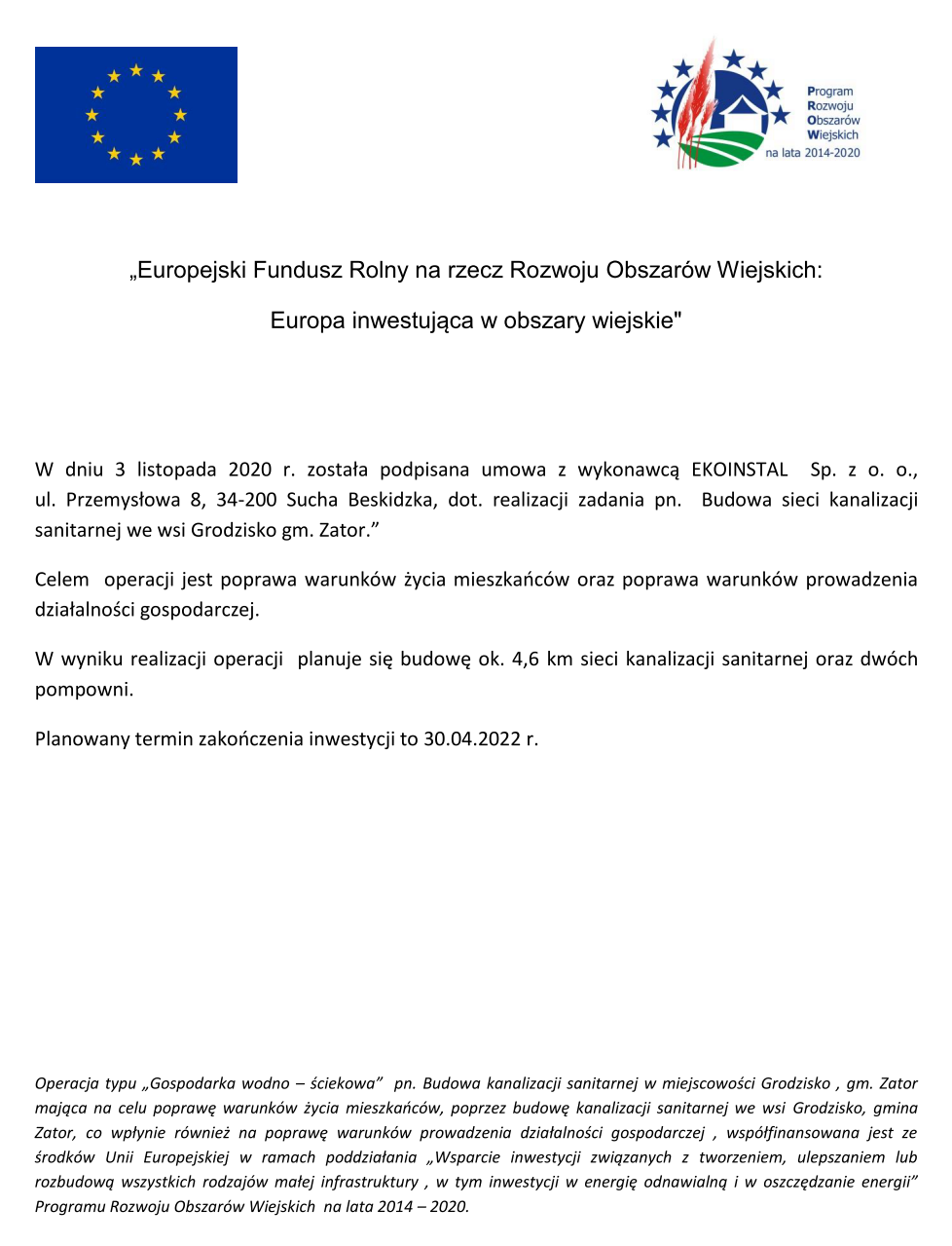 „Europejski Fundusz Rolny na rzecz Rozwoju Obszarów Wiejskich:Europa inwestująca w obszary wiejskie" 2020-11-13