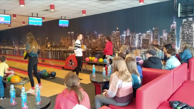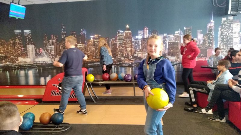 Również w piątek panie: M. Tofilska i M. Gołuchowska zabrały harcerzy do kręgielni „Kula Hula” w Oświęcimiu. Grę poprzedziły krótkie warsztaty, podczas których uczniowie poznali zasady bowlingu. Nie obyło się bez elementu rywalizacji, przecież każdy gracz otrzymywał punkty, ale i tak dla wszystkich liczyła się wyłącznie dobra zabawa w gronie rówieśników.
