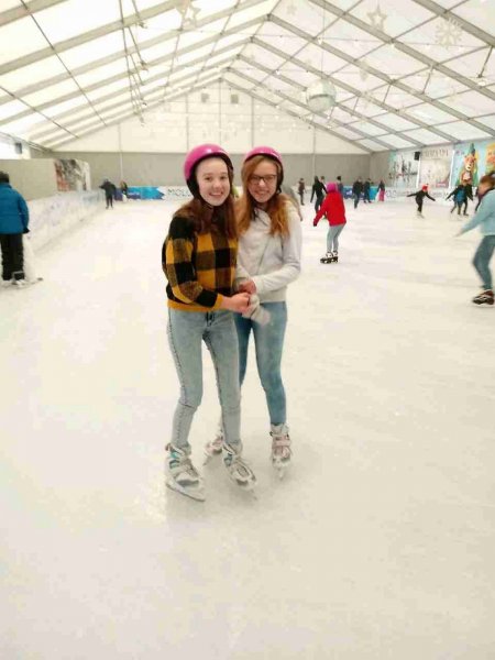 Pierwszego dnia ferii dwudziestoosobowa grupa uczniów pod opieką p. I. Mikler i p. J. Sroczyńskiej pojechała na lodowisko do Osieka, aby chociaż w ten sposób doświadczyć zimowego szaleństwa, gdyż na śnieg w tym roku nie mogli liczyć. Amatorzy łyżew kręcili piruety, a te osoby, które stawiały pierwsze kroki na lodzie, mogły skorzystać z uroczych pingwinków, które pomagały im utrzymać równowagę.