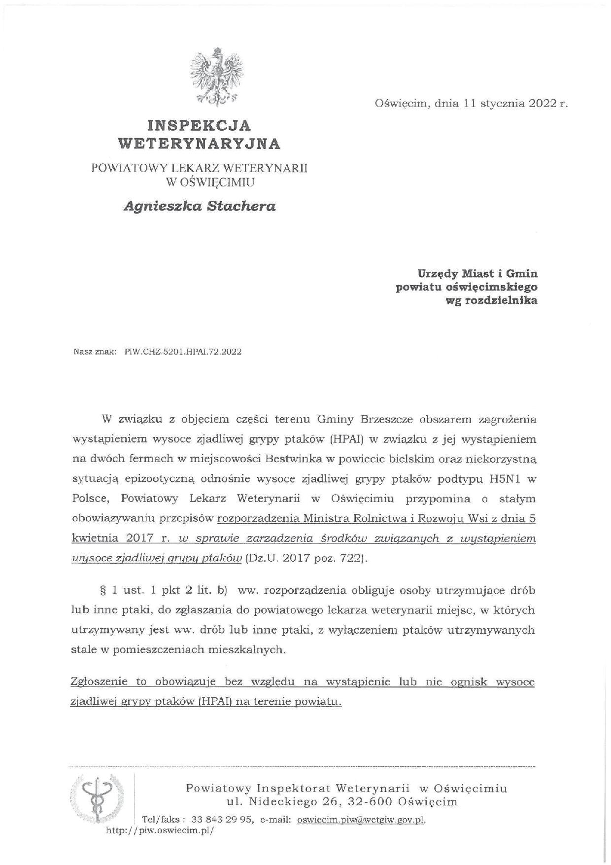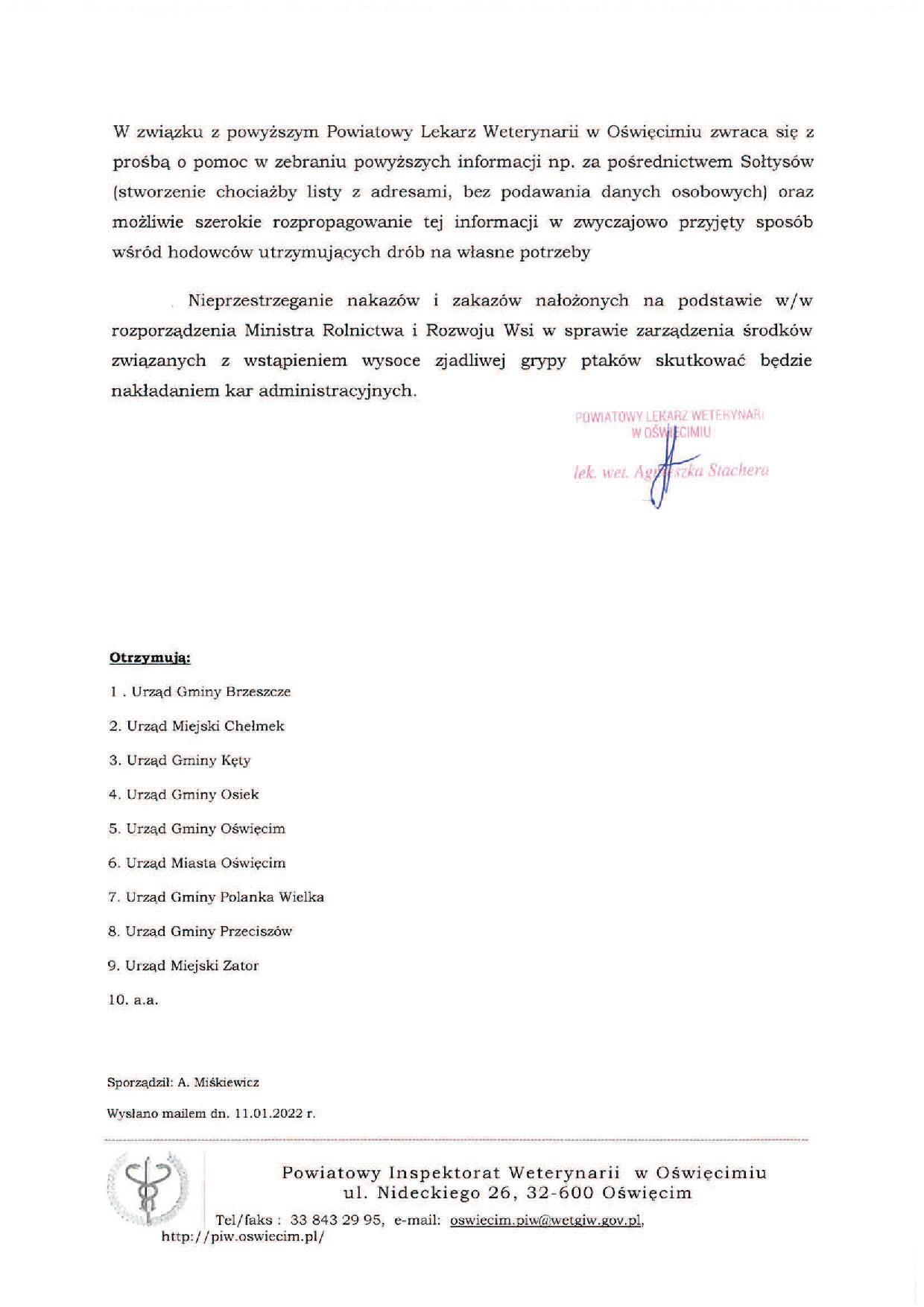 Grypa ptaków - obowiązek zgłoszenia miejsc, w których utrzymywany jest drób lub inne ptaki. 2022-01-26