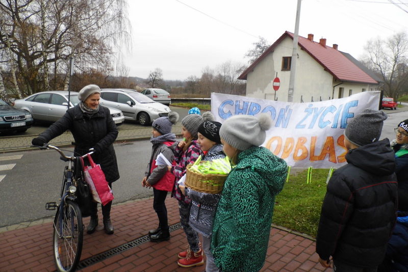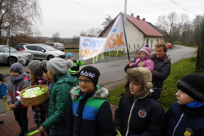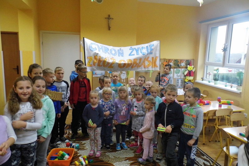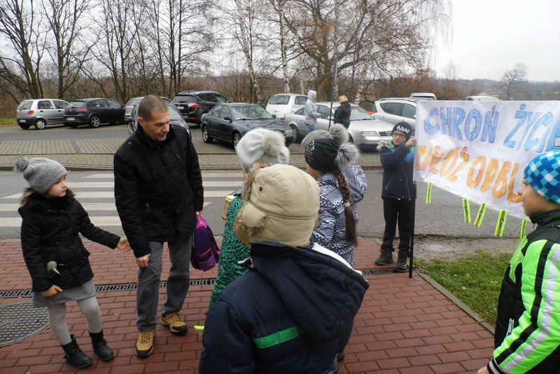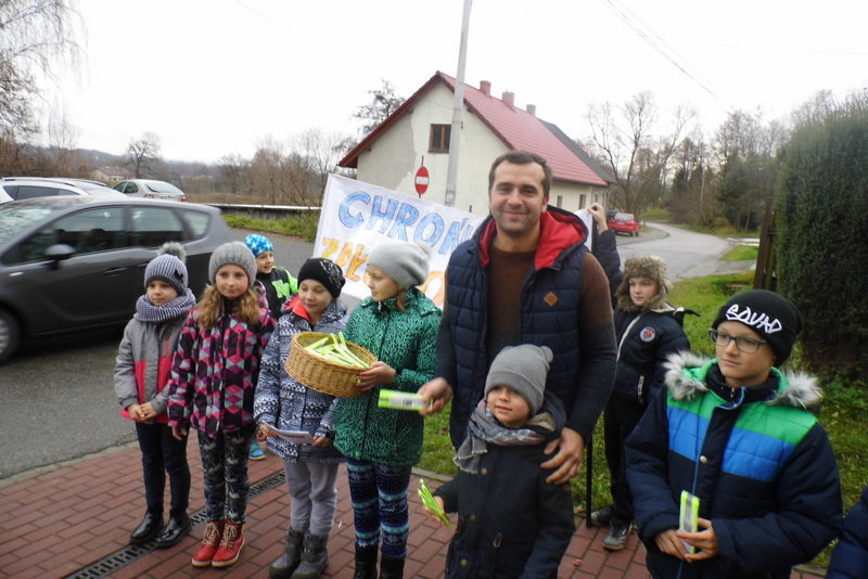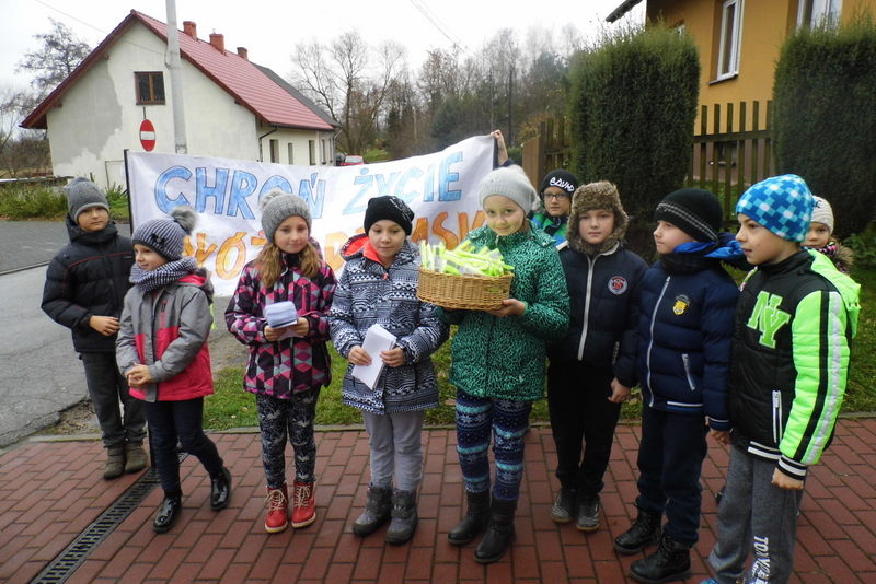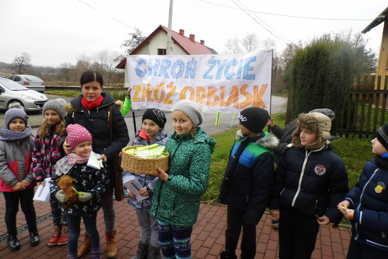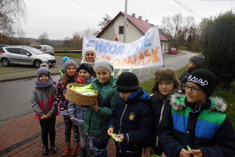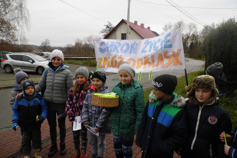 Uczniowie klasy III pod opieką pedagoga i wychowawcy klasy, przeprowadzili na placu przy wejściu do szkoły, happening pod hasłem umieszczonym na kolorowym transparencie „Chcesz Żyć – Załóż Odblask”. Akcja skierowana była do wszystkich mieszkańców wsi w celu uświadomienia im ważności znaczenia obowiązującego przepisu ruchu drogowego, dotyczącego obowiązkowego noszenia odblasków. Od 1 września 2014r. wszyscy piesi i rowerzyści muszą nosić elementy odblaskowe po zmroku i poza terenem zabudowanym. Happening odbył się 16. 11. 2016r. w godzinach porannych. W dniu happeningu uczniowie rozdawali napotkanym na drodze mieszkańcom wsi, odblaski i ulotkę informacyjną. W ulotce zawarte były najważniejsze informacje dotyczące bezpiecznego poruszania się na drodze po zmroku. Trzecioklasiści – organizatorzy happeningu, nie zapomnieli także o najmłodszych – przedszkolakach, których odwiedzili w przedszkolu, znajdującym się w budynku ich szkoły. Spotkanie w przedszkolu przebiegło w miłej atmosferze. Przedszkolaki z zainteresowaniem słuchały swoich starszych kolegów, którzy nie tylko wytłumaczyli im dlaczego tak ważne jest noszenie odblasków, ale także obdarowali ich odblaskami. Happening pozytywnie został odebrany przez mieszkańców wsi Rudze, którzy w dowód poparcia akcji, chętnie pozowali do wspólnych, pamiątkowych zdjęć. Pamiętajmy, że jesteśmy odpowiedzialni za nasze życie i chcemy aby nasze promowanie noszenia odblasków przyniosło pożądany efekt.