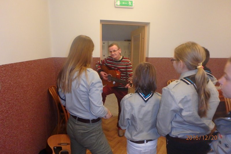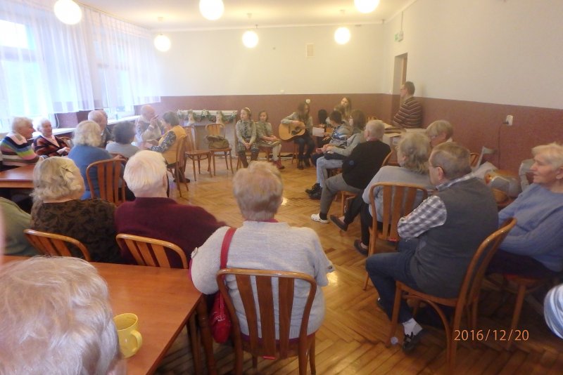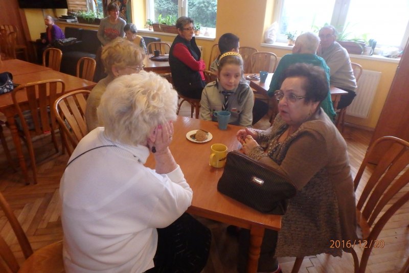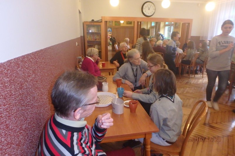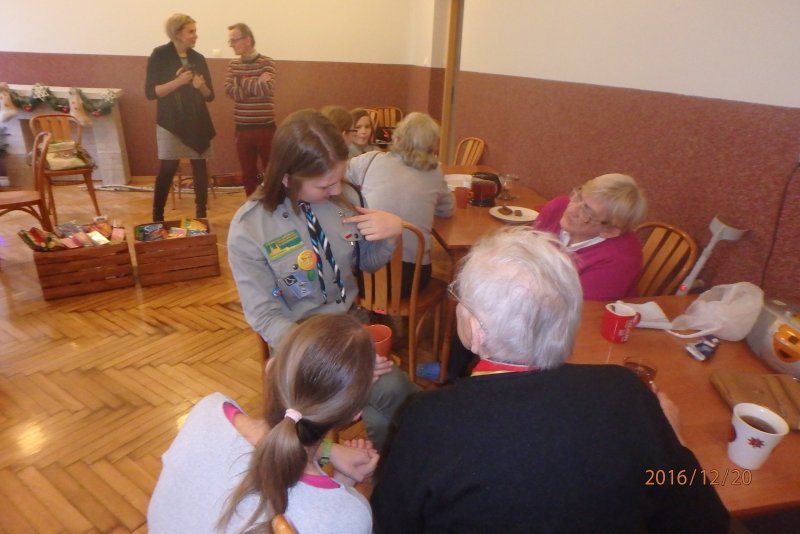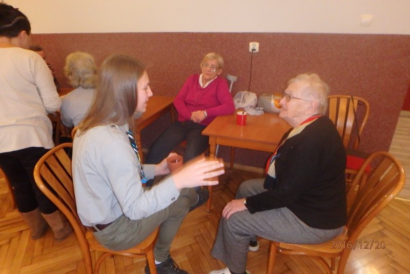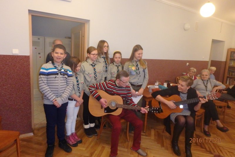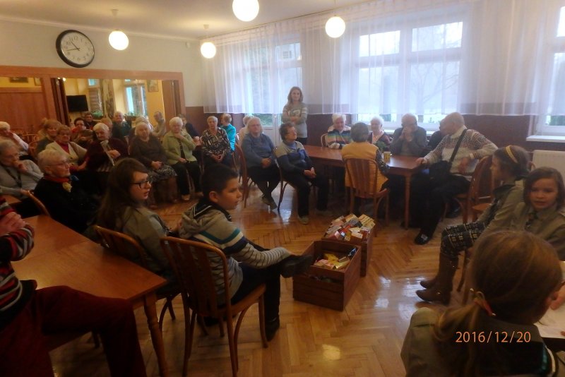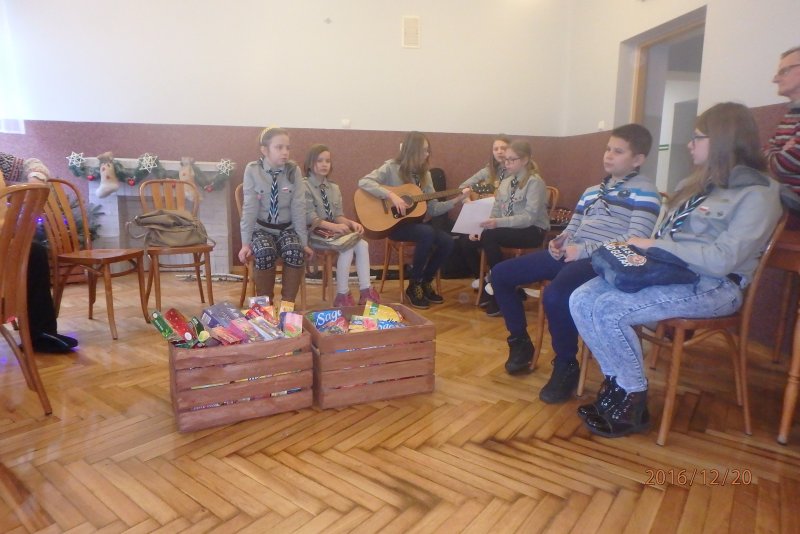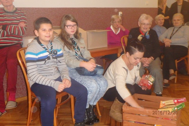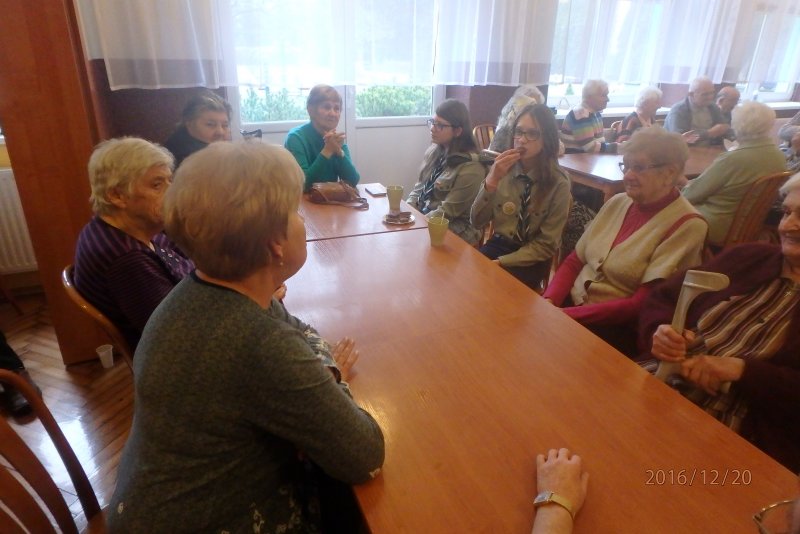 20 grudnia wraz z ks. Robertem Jończykiem delegacja harcerzy z drużynową Joanną Momot i drużynową zuchów Magdaleną Wieczorek pojechała do Oświęcimia , aby odwiedzić podopiecznych Dziennego Domu Pomocy. Po gorącym przywitaniu przez seniorów, wszyscy usiedli przy wspólnym stole, aby wspólnie napić się gorącej herbaty . Czas miło upłynął na anegdotkach o dawnych czasach, którymi chętnie dzielili się seniorzy. Następnie nadszedł czas radosnego muzykowania i przy akompaniamencie gitary wspólnego śpiewania kolęd.