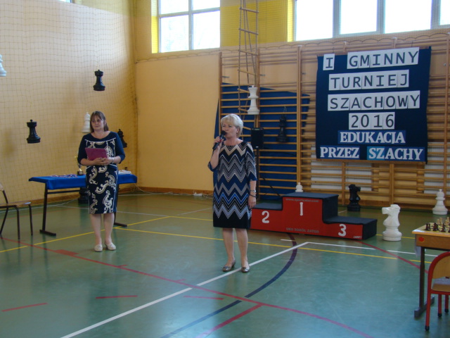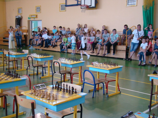 Na początku turnieju p. Dyrektor Renata Pękala powitała przybyłych gości, zawodników, rodziców oraz nauczycieli. Oficjalnego otwarcia dokonał pan Burmistrz. Na starcie stanęło 31 uczniów z klas I i 36 zawodników z klas II i III. Rozgrywki były prowadzone systemem szwajcarskim na dystansie 7 rund. Runda trwała maksymalnie 20 minut . Na zawodach obowiązywały przepisy Kodeksu Szachowego. Sędzią zawodów był pan Paweł Mroziński z Krakowa. Zawody przebiegały w miłej atmosferze, czas szybko mijał. Po rozegraniu wszystkich rund ogłoszono wyniki. Pani Dyrektor wraz z panem Burmistrzem udekorowali medalami zwycięzców na podium. Wyniki przedstawiały się następująco: