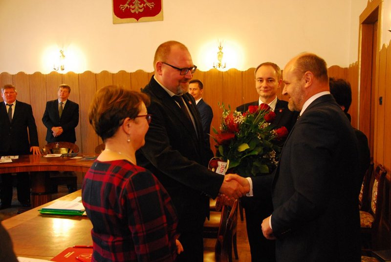 Radny Senior Wiesław Susek złożył gratulacje nowemu Przewodniczącemu i życzył owocnej współpracy .