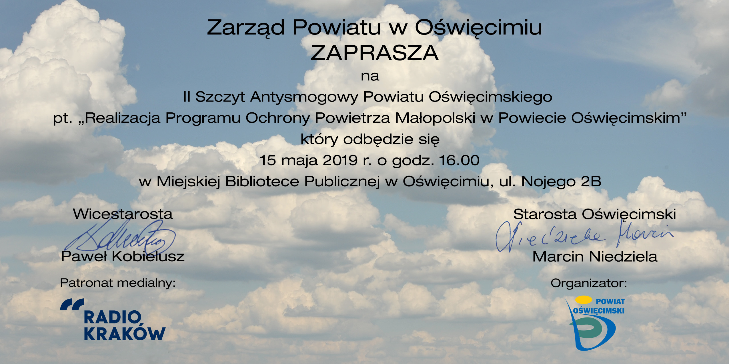 II Szczyt Antysmogowy Powiatu Oświęcimskiego - zaproszenie 2019-05-09