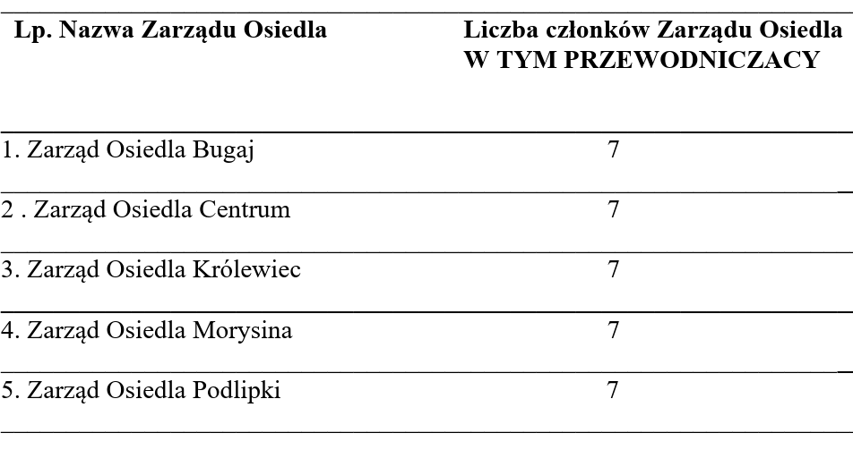 Działając na podstawie § 3 ust. 3 Statutów Sołectw (Uchwała Nr IV/21/07 Rady Miejskiej w Zatorze z dnia 30 stycznia 2007 r., z późniejszymi zmianami) – podaję do wiadomości wszystkich wyborców Gminy Zator ustaloną liczbę członków poszczególnych zarządów osiedli na terenie Gminy Zator: