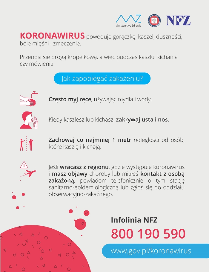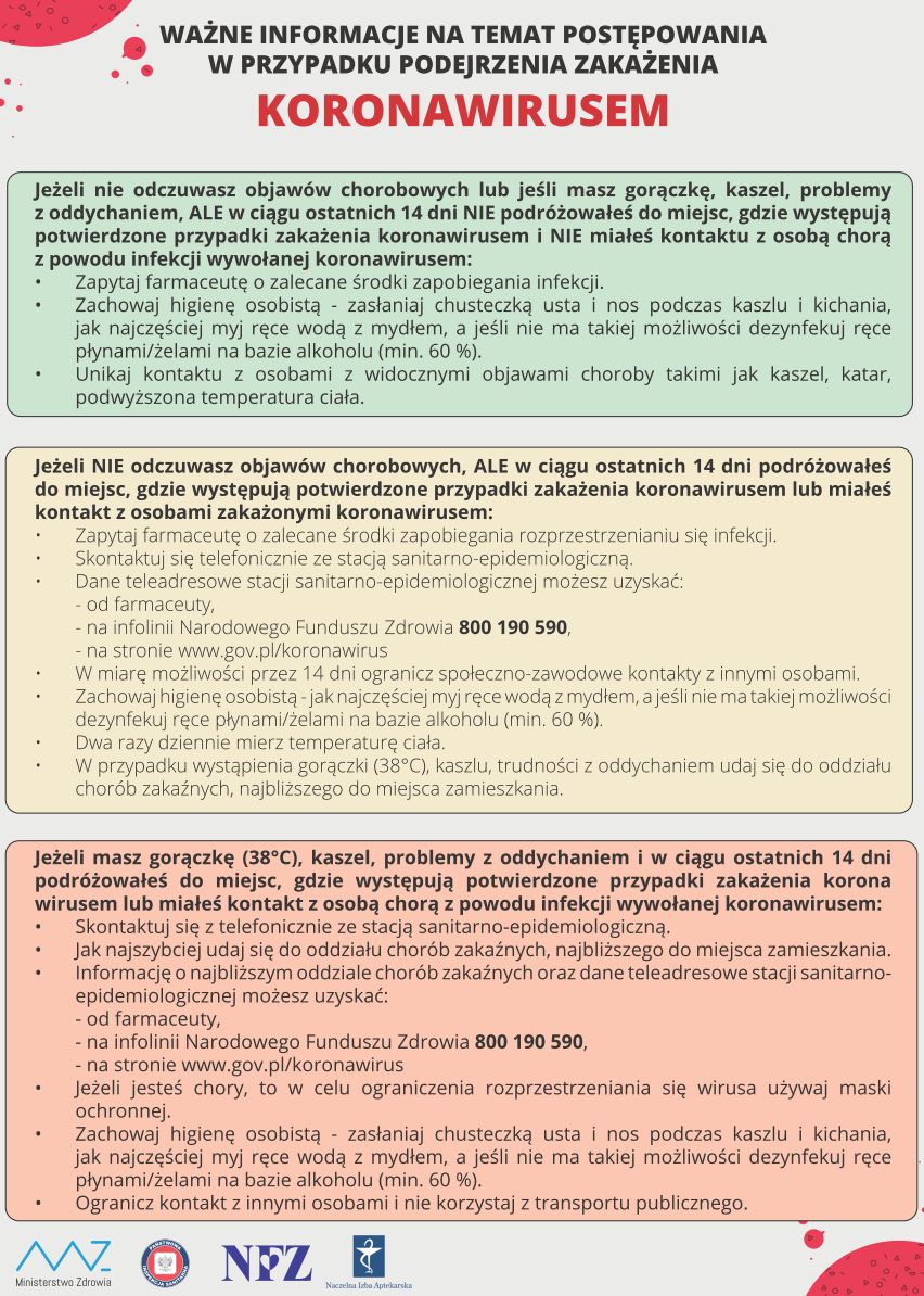 Telefoniczna Informacja Pacjenta – 800-190-590 – tu przez całą dobę uzyskasz informacje o postępowaniu w sytuacji podejrzenia zakażenia koronawirusem.