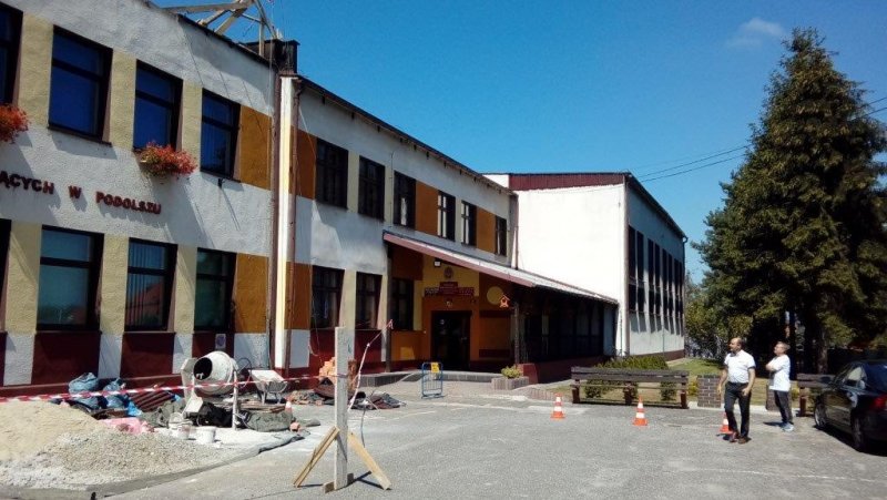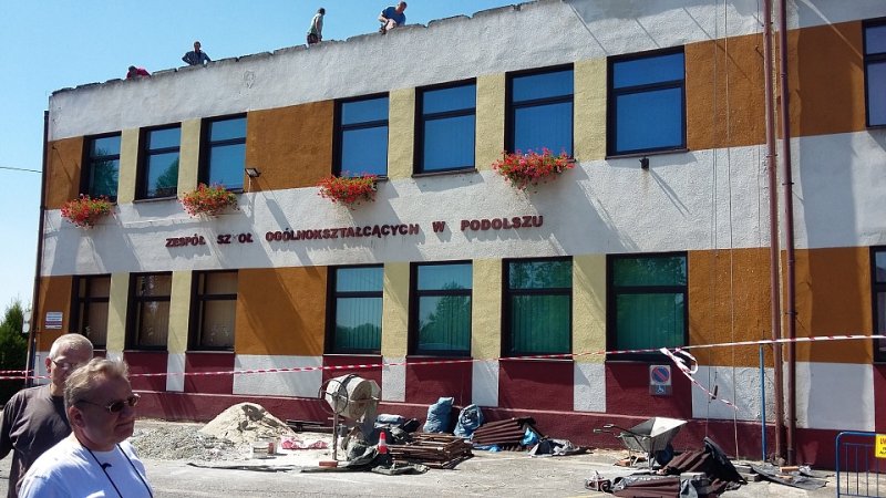 Rozpoczęto prace budowlane związane z modernizacją dachu na obiekcie Zespołu Szkół Ogólnokształcących im. Tadeusza Kościuszki w Podolszu. W ramach przedsięwzięcia wymienione zostaną zniszczone przez erozję biologiczną i zużyte elementy dachu takie jak słupy, płatwie czy krokwie, pokrycie dachowe, orynnowanie, instalacja odgromowa i inne niezbędne elementy obiektu. Zastosowanie tzw. systemowego pokrycia dachu papą termozgrzewalną pozwoli na kolejne długie lata użytkowania obiektu. Łączna powierzchnia modernizowanego dachu to niemal 800m2.