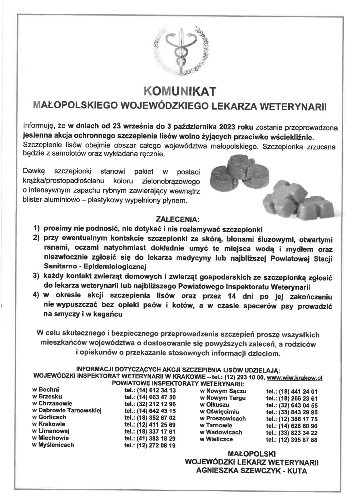 Jesienna akcja ochronnego szczepienia lisów przeciwko wściekliźnie w dniach od 23.09.2023 r. do 03.10.2023 r. - ZALECENIA 2023-09-19