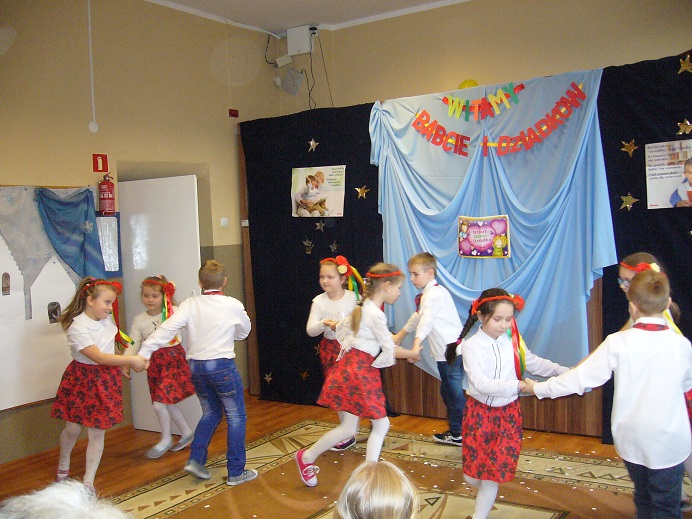 Bardzo miło i wesoło zakończyliśmy karnawał w naszej placówce. Przez dwa dni gościliśmy nasze babcie i dziadków. Dnia 21 lutego przedszkolaki przygotowały występ, natomiast 22 lutego dzieci ze szkoły. W pięknie udekorowanej sali odbyły się popisy artystyczne między innymi: recytacje wierszy, śpiew piosenek, prezentacja tańców. Ważnym punktem spotkania była inscenizacja przedszkolaków oraz przedstawienie pt. „Królowa śniegu” zaprezentowany przez uczniów. Dzieci ze szkoły pięknie zatańczyły trojaka. Gromkie brawa towarzyszyły nam przez całe spotkanie.