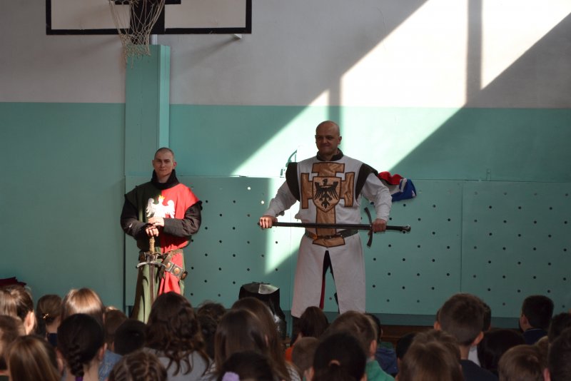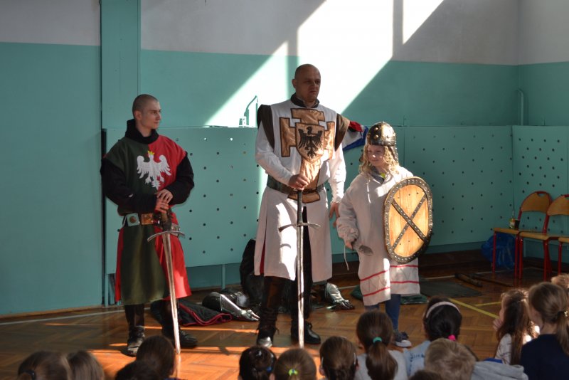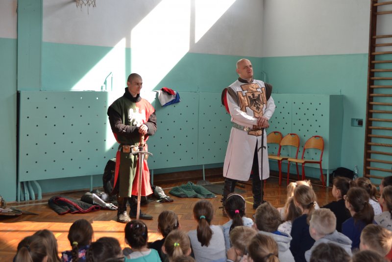 Każdy z zebranych na sali słuchał z wielkim zaciekawieniem. Dzięki tej lekcji przypomnieliśmy sobie średniowiecze, dowiedzieliśmy się, jak wyglądał strój rycerzy oraz poznaliśmy ich życie. Mam nadzieję, że w ten sposób będziemy się uczyć częściej.