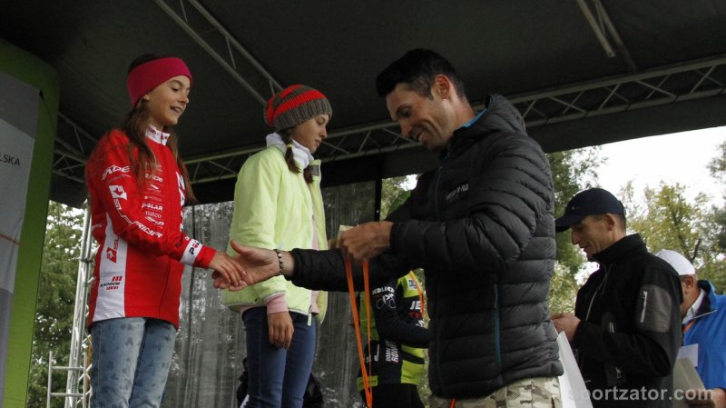 Znakomity finał Małopolskiej Ligi Kolarskiej w wykonaniu naszych kolarzy. Podczas dekoracji zwycięzców dało się słyszeć wśród kibiców: - „Co oni jedzą w tym Zatorze” i czy to czasem nie sprawka smacznego i pożywnego karpia. Zdecydowane zwycięstwa w większości kategorii wiekowych i miejsca na podium w młodzikach i żakach to już standard w wykonaniu kolarzy Sokoła. Tym razem Myślenice gościły najlepszych kolarzy regionu Polski południowej. Dotarli nie tylko najlepsi ale również najwytrwalsi zawodnicy z kilkudziesięciu klubów. Zmagania w finale to nie tylko walka z arcytrudną trasą, mocnymi rywalami ale również niestety z ulewnym zimnym deszczem i wszechobecnym błotem oraz podtopieniami na trasie. W kategorii elita zwyciężył Michał Topór, w kategorii juniorów zwycięża Stanisław Nowak, w juniorach młodszych zwycięzcą zostaje Michał Śliwiński, jako trzeci młodzik do mety dociera Kamil Łaziński a kilka pozycji za nim Maks Wiśniowski. W najmłodszej kategorii żaków, wśród chłopców lideruje Dawid Śliwiński a wśród dziewcząt, na drugim miejscu zawody kończy Inez Durlak. Zawodników dekorowała Mistrzyni Świata, wielokrotna Mistrzyni Polski Anna Szafraniec – Rutkiewicz oraz jeden z najlepszych polskich kolarzy szosowych – Marek Rutkiewicz. W zawodach nie wystąpiła Gabriela Wojtyła, która reprezentowała klub podczas Bike Expo oraz Marcin Sermak z powodu kontuzji. W klasyfikacji generalnej całej ligi, zatorski klub zajmuje drugie miejsce w rankingu teamów. Szczególna podziękowania dla wszystkich rodziców i sympatyków klubu, którzy licznie przybyli dopingować zawodników oraz pomagać przy obsłudze kolarzy podczas wyścigu. Obecnie zawodnicy przygotowują się do Pucharu Polski, który odbędzie się już w sobotę w Głuchołazach.