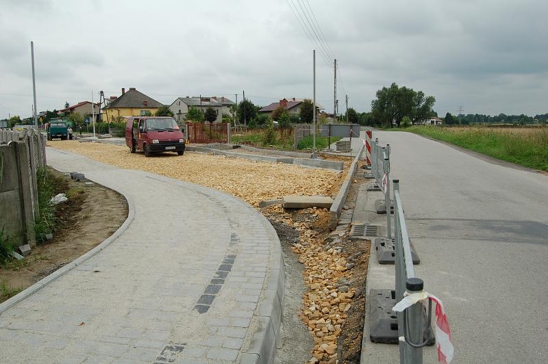 • budowę prawostronnego chodnika o szerokości 2,0 m i lewostronnej opaski bezpieczeństwa wraz z chodnikiem o szerokości od 1,0 do 2,0 mb, o łącznej powierzchni bruku 1.230,8 m2,