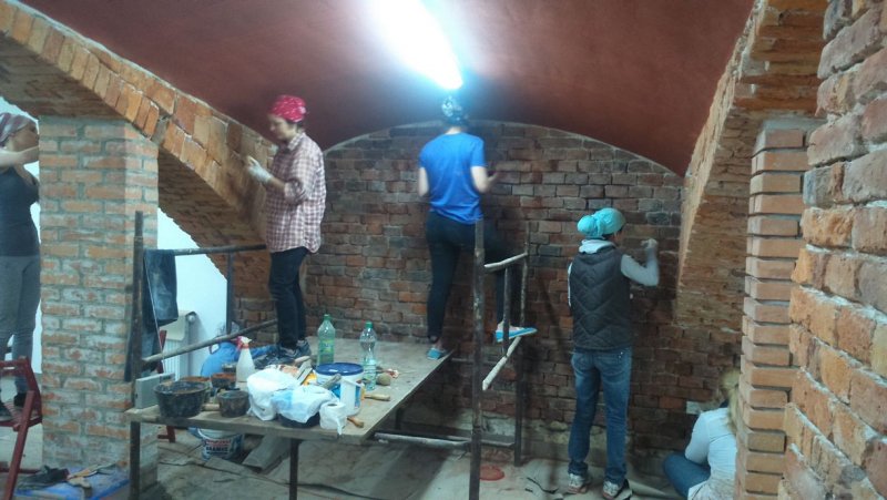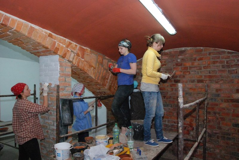Podczas tegorocznych praktyk studenci pod kierunkiem prof. Ireneusza Płuski odnawiają i konserwują dziewiętnastowieczne wątki ceglane w piwnicach budynku dawnego Sądu Grodzkiego Rynek 2 w Zatorze.