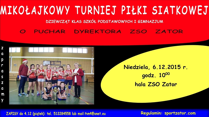 Otwartego Mikołajkowego Turnieju Siatkówki Dziewcząt o Puchar Dyrektora ZSO Zator.