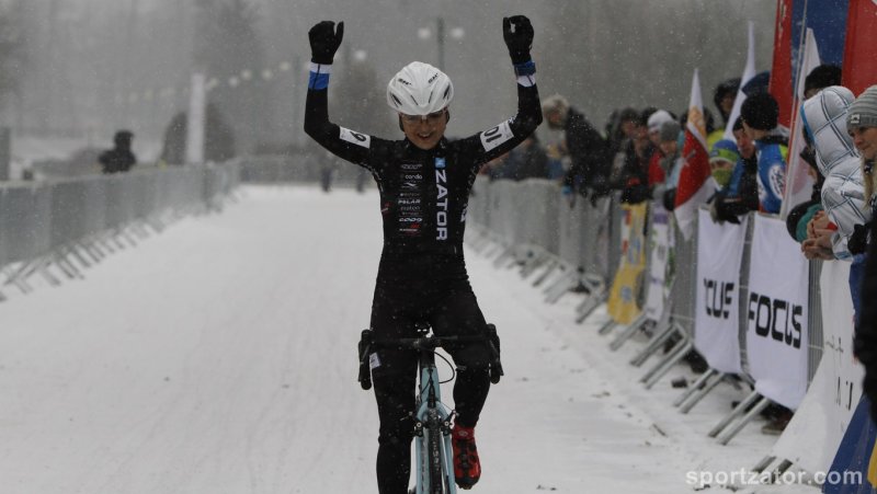 Rewelacyjne wieści z79 Mistrzostw Polski w kolarstwie przełajowym Lublin 2016. Mamy trzy medale Mistrzostw! Złoty srebrny i brązowy. Nasze zawodniczki nie tylko były najliczniejszą drużyną w stawce wyścigu, ale również najskuteczniejszą. Żaden klub nie mógł się cieszyć taką ilością zdobytych medali. Mistrzynią kraju w kategorii U23 na rok 2016 zostaje Rita Malinkiewicz. W tej samej kategorii z brązowego medalu i tytułu mistrzowskiego , cieszyła się również Gabriela Wojtyła. Choć pozostał niedosyt, bo przez większość dystansu jechała na drugiej pozycji, by po kilku upadkach stracić tą lokatę. Pościg za srebrem był ambitny, a na mecie zabrakło tylko 5 sekund. Gdyby wyścig trwał odrobinę dłużej, niewątpliwie srebro byłoby dla Gabrysi. Najwięcej radości na mecie sprawiła sobie, całej ekipie i rodzicom Karolina Włoch. Po wspaniałej walce na trasie, mądrej taktyce, Karolina zostaje Wicemistrzynią Polski w kategorii juniorek jako pierwszoroczna zawodniczka. Jest to pierwszy medal Mistrzostw Polski naszej najmłodszej wychowanki UKS Sokół! Tym samym dołączyła do grupy Mistrzyń Polski z Zatora. Grupy, jaką mało który klub w Polsce, może się aktualnie pochwalić. W Lublinie bardzo dobrze poradziła sobie trenująca od niedawna w zatorskim klubie Dagmara Drabik. Był to jej najlepszy występ w sezonie i jest dowodem, że cała ekipa idealnie trafiła z formą. Dziękujemy wszystkim, którzy przyczynili się do tak wspaniałego podsumowania trzymiesięcznego okresu przygotowań do Mistrzostw. Dziękujemy kibicom, tym dopingującym na trasie i tym oglądającym relację na żywo w telewizji. Kolejny start już w najbliższy weekend w Tarnowie. Zapraszamy do kibicowania naszym zawodniczkom.
