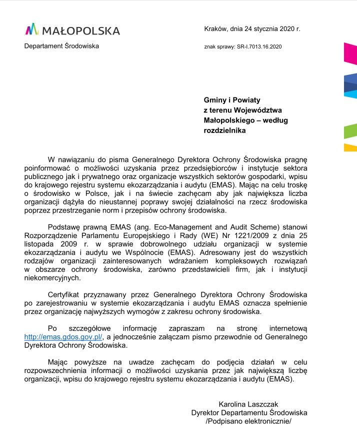 Możliwość wpisu do krajowego rejestru systemu ekozarządzania i audytu (EMAS) 2020-02-14