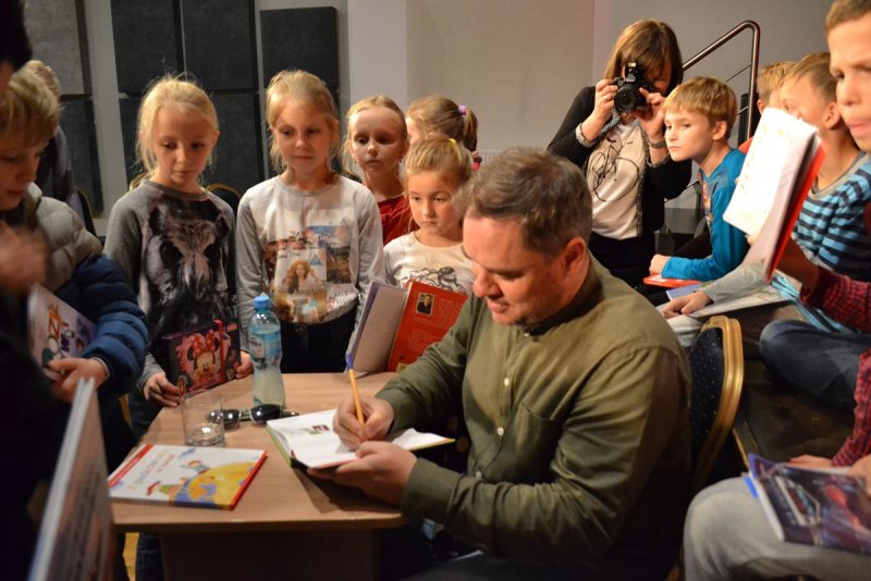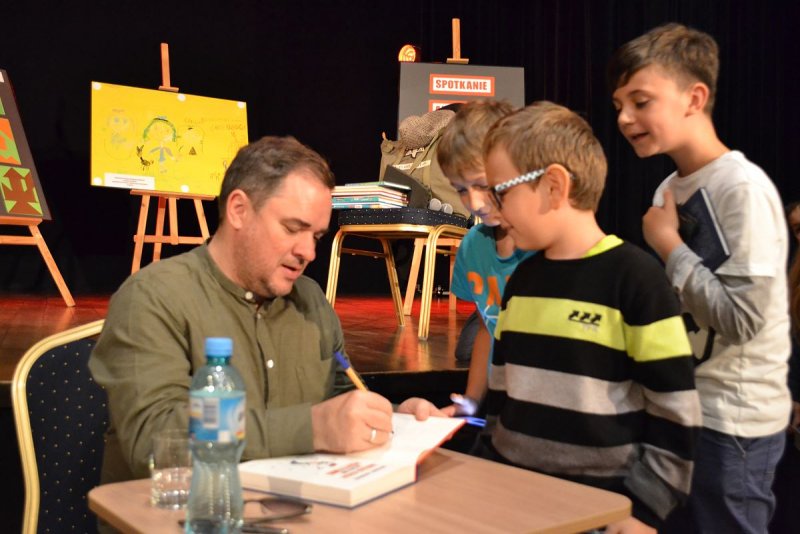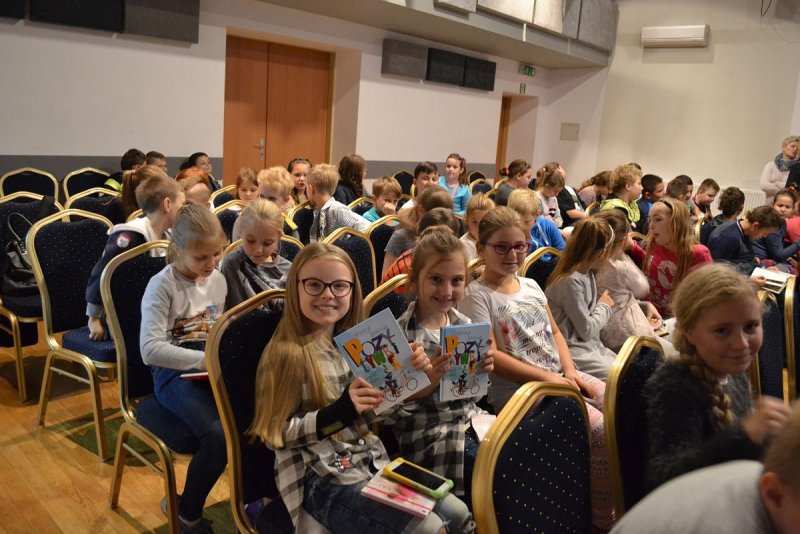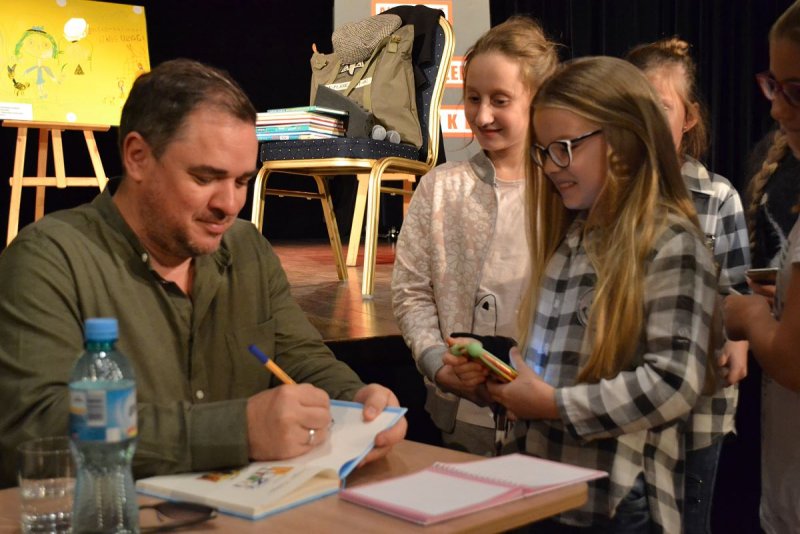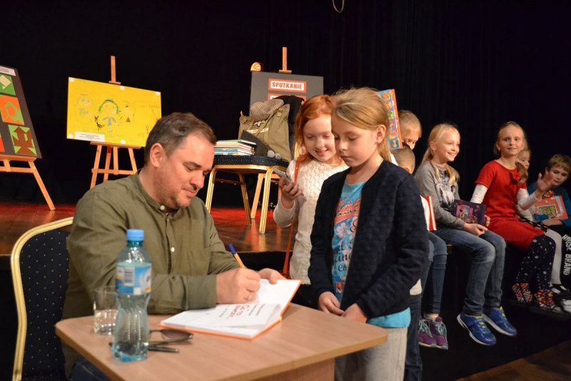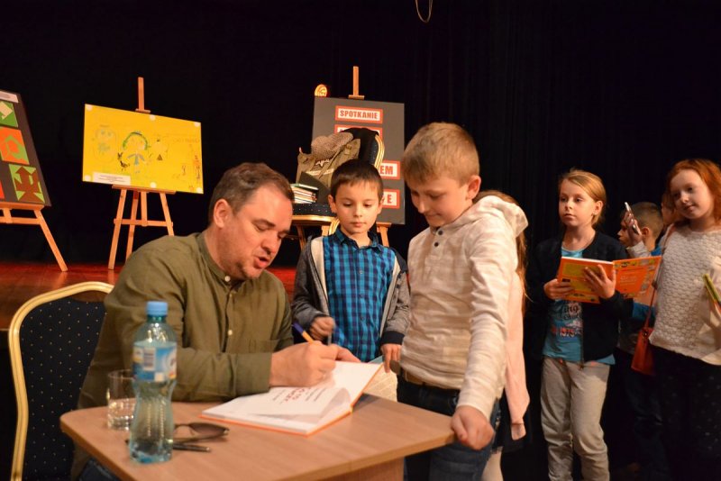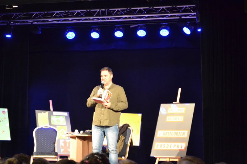 „Grzegorz Kasdepke to autor wielu książek dla dzieci. Najsłynniejsze to: Mam prawo, Kuba i Buba, Kacperiada, Tylko bez całowania, Detektyw Pozytywka. Podczas spotkania poznaliśmy je dokładnie. (Kasdepke) rozdawał autografy, a my zadawaliśmy mu pytania. Było naprawdę fajnie i cudownie. Zawsze chciałam się z nim spotkać. Lubię jego książki, więc emocje mnie nie opuszczały.” /Amelia Pomietlak i Maja Nowotarska/